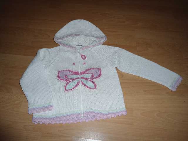 pekny svetrik s kapucnou, velkost 3-4 roky, dlzka 40 cm, rukav od kapucni 44 cm, od pazuchy 26 cm, je noseny ale stale krasny