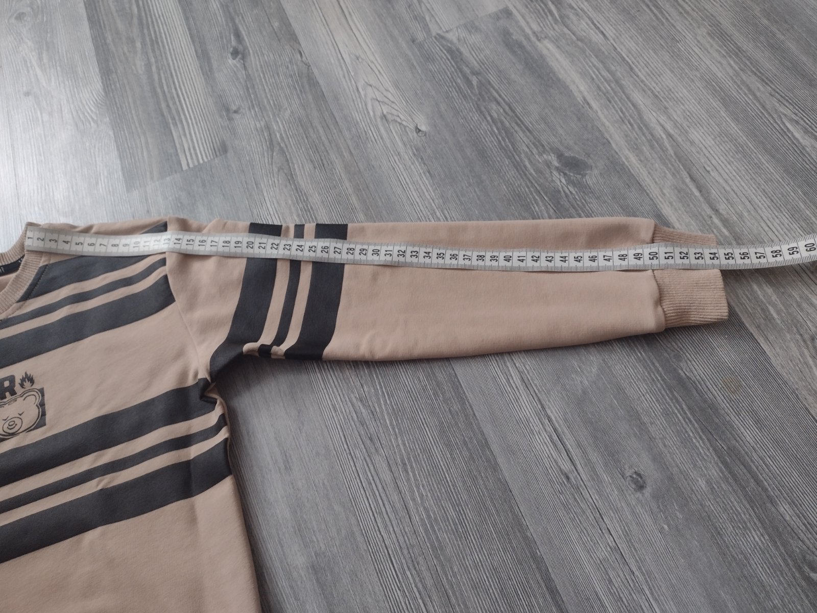 Pekna mikina s patentami na rukavoch,moze sa nosit aj ako tricko-moj tak nosil...super stav,malo nosena,velkost pisana 122 ale to skor 128,rozmery na foto