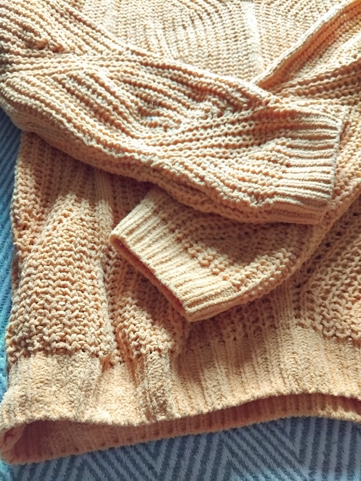 Prijemny pulover, velmi pekny stav. Iba na rukave vytrhnute ocko, vid foto.