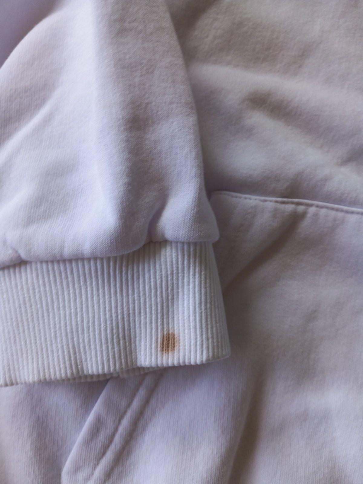 Ponúkam bielu mikinu po synovi. veľkosť S - miery na foto. počas fotenia som si všimla 2 bodky. tá väčšia sa dá určite vyprať. K cene pripočítavam poštovné.