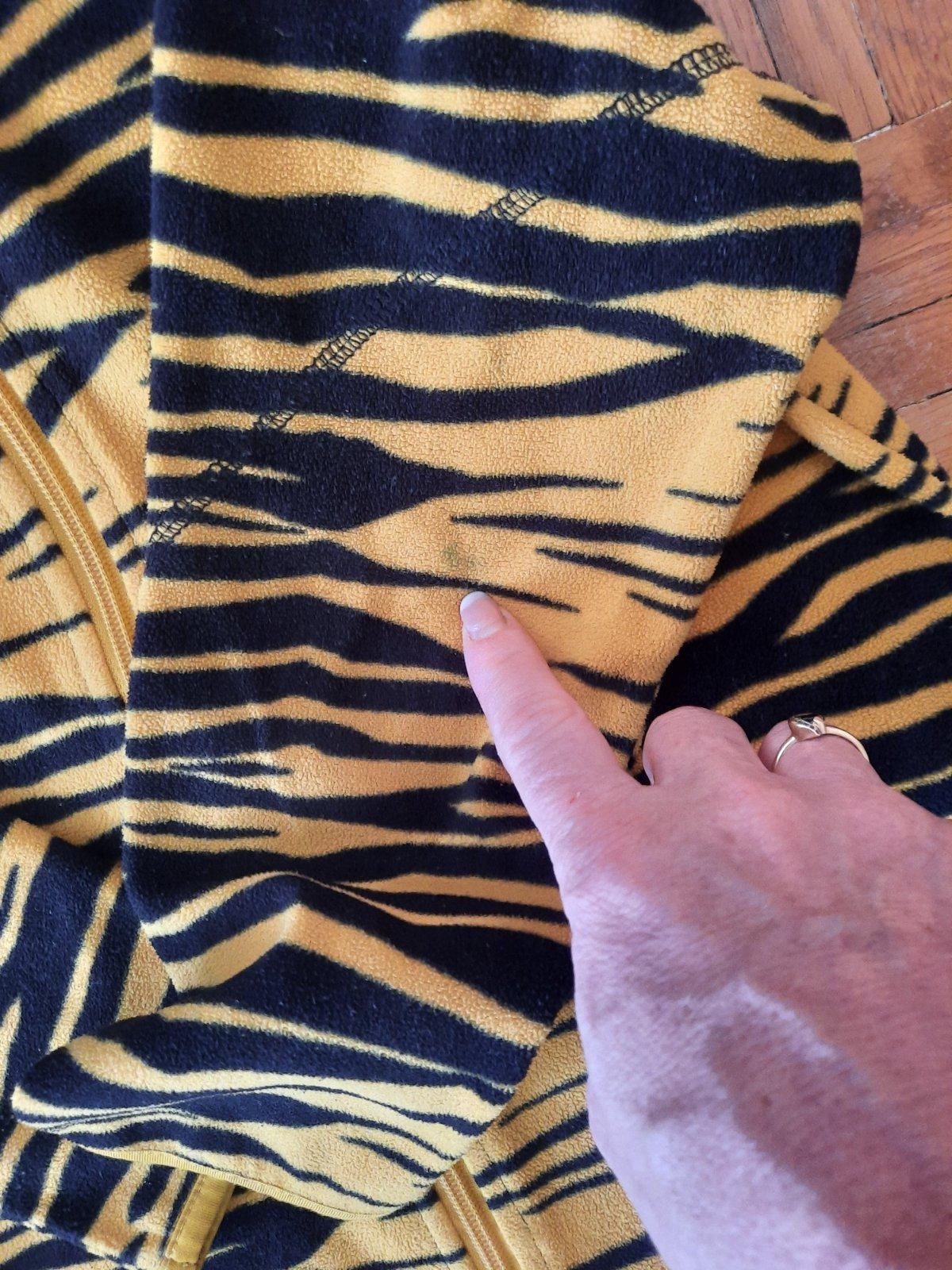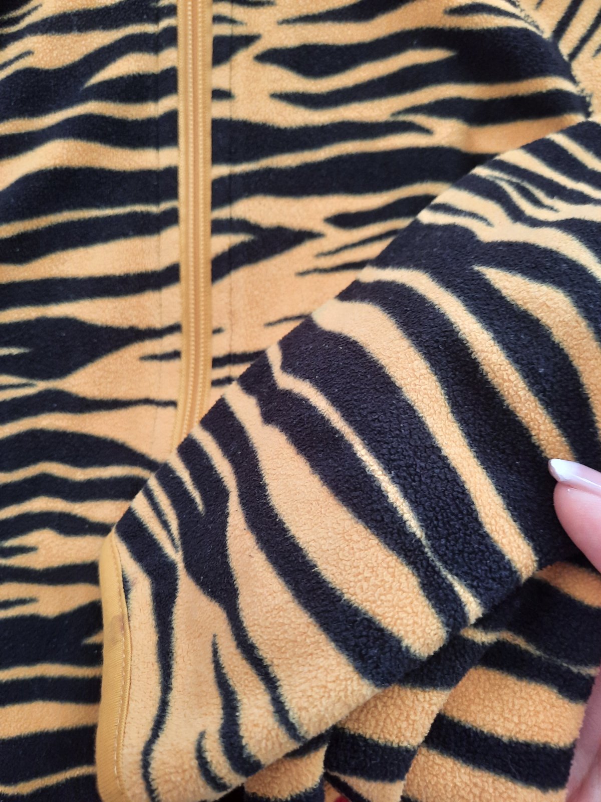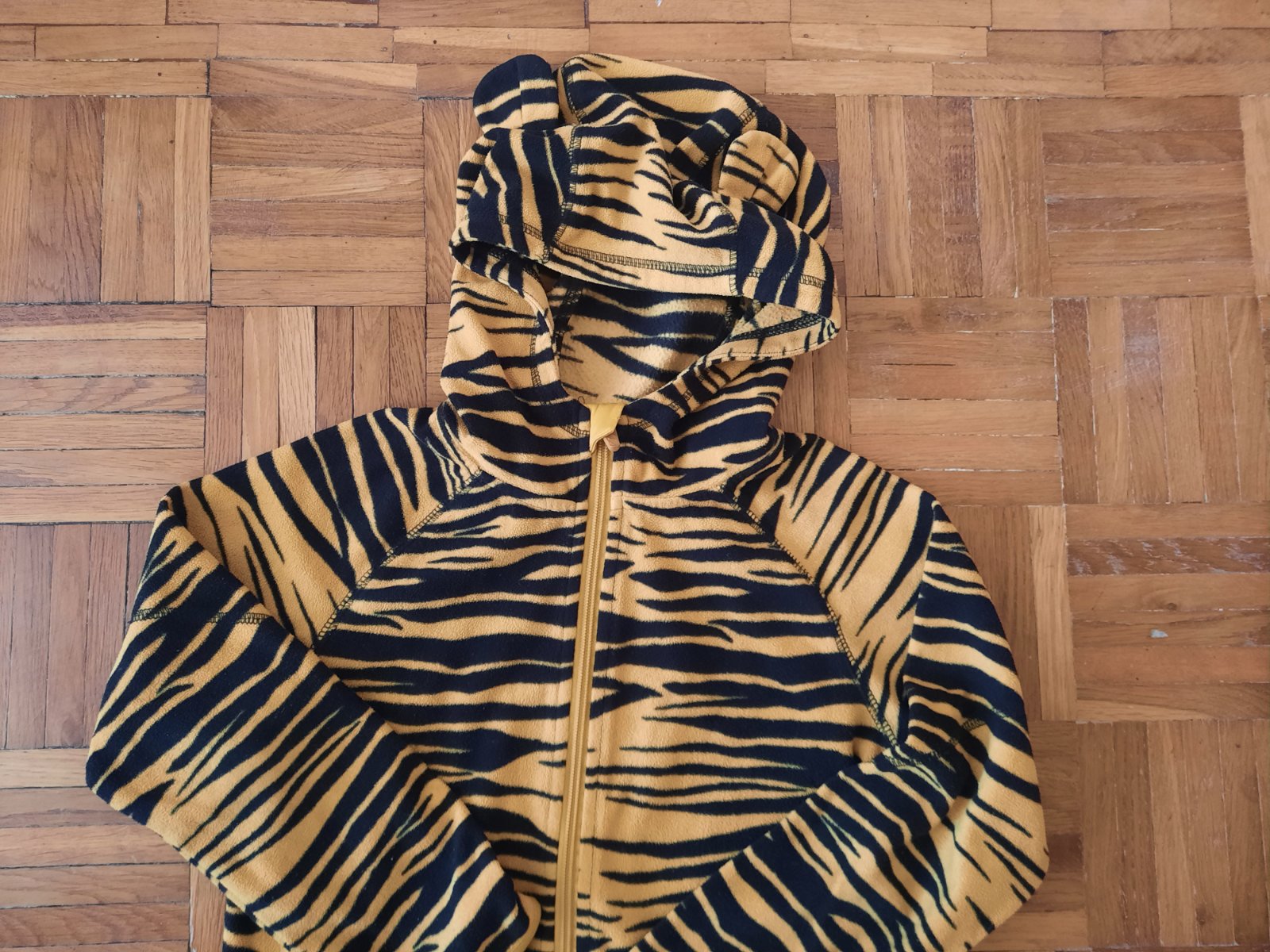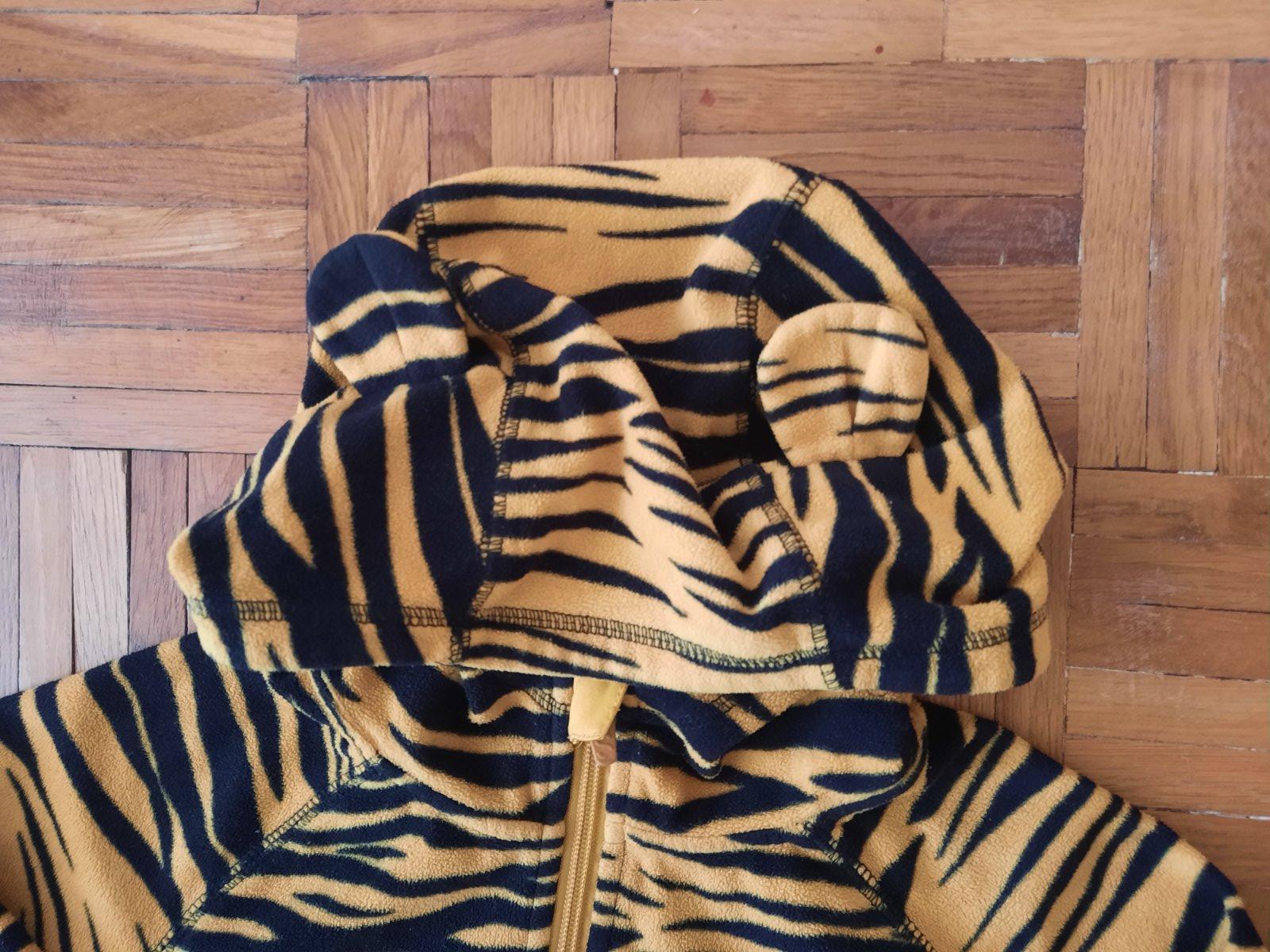 Pekná tenká flísová mikina so zapínaním na zips. Má aj kapucňu, na ktorej sú malé "uši". Vačky nemá.