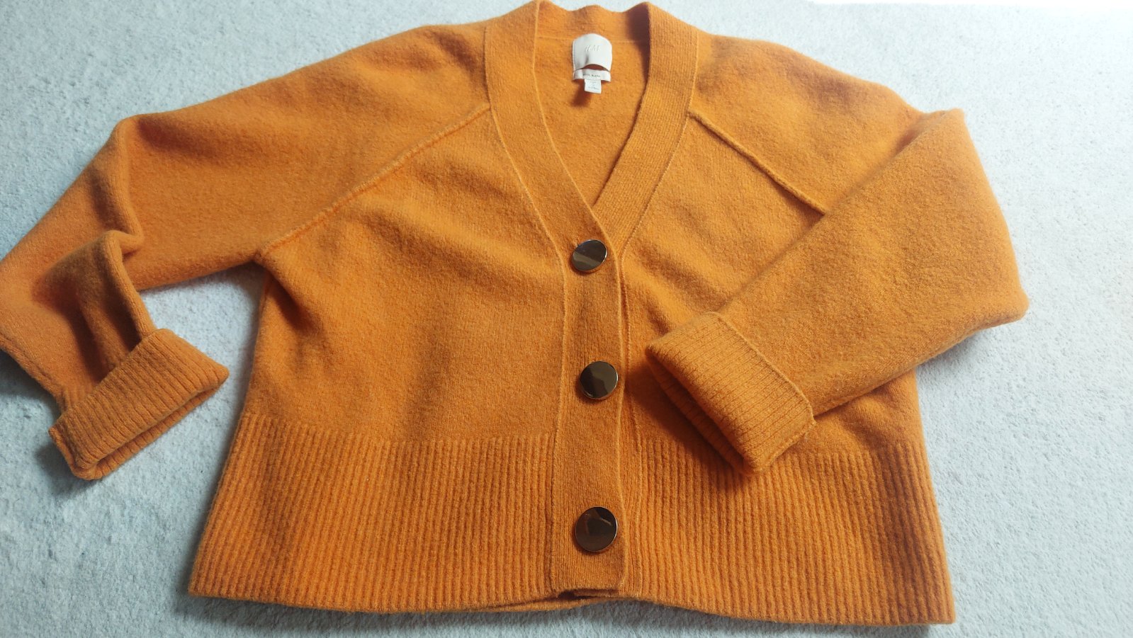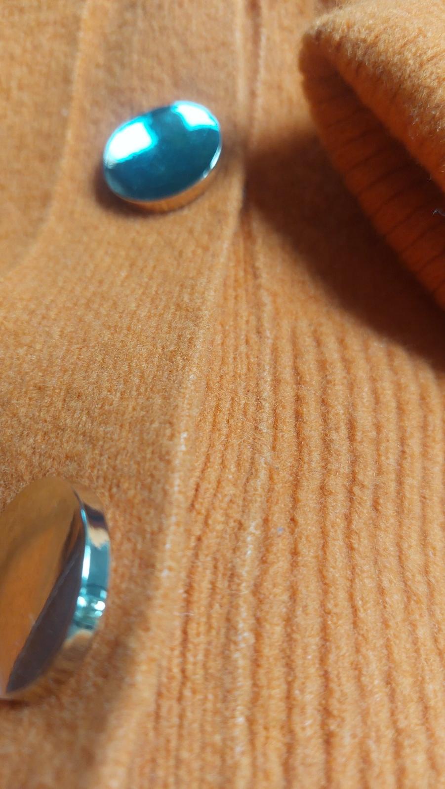 M-L -nádherná farba. super kvalita. ; vlna, výborný stav. aj ako jarný kabátik. aj ako sveter do kancelárie. poctivý kus v šatníku, krasne zlate gombíky. je mi žiaľ veľký. veľmi sa mi pacils ťažkým srdcom posuvam