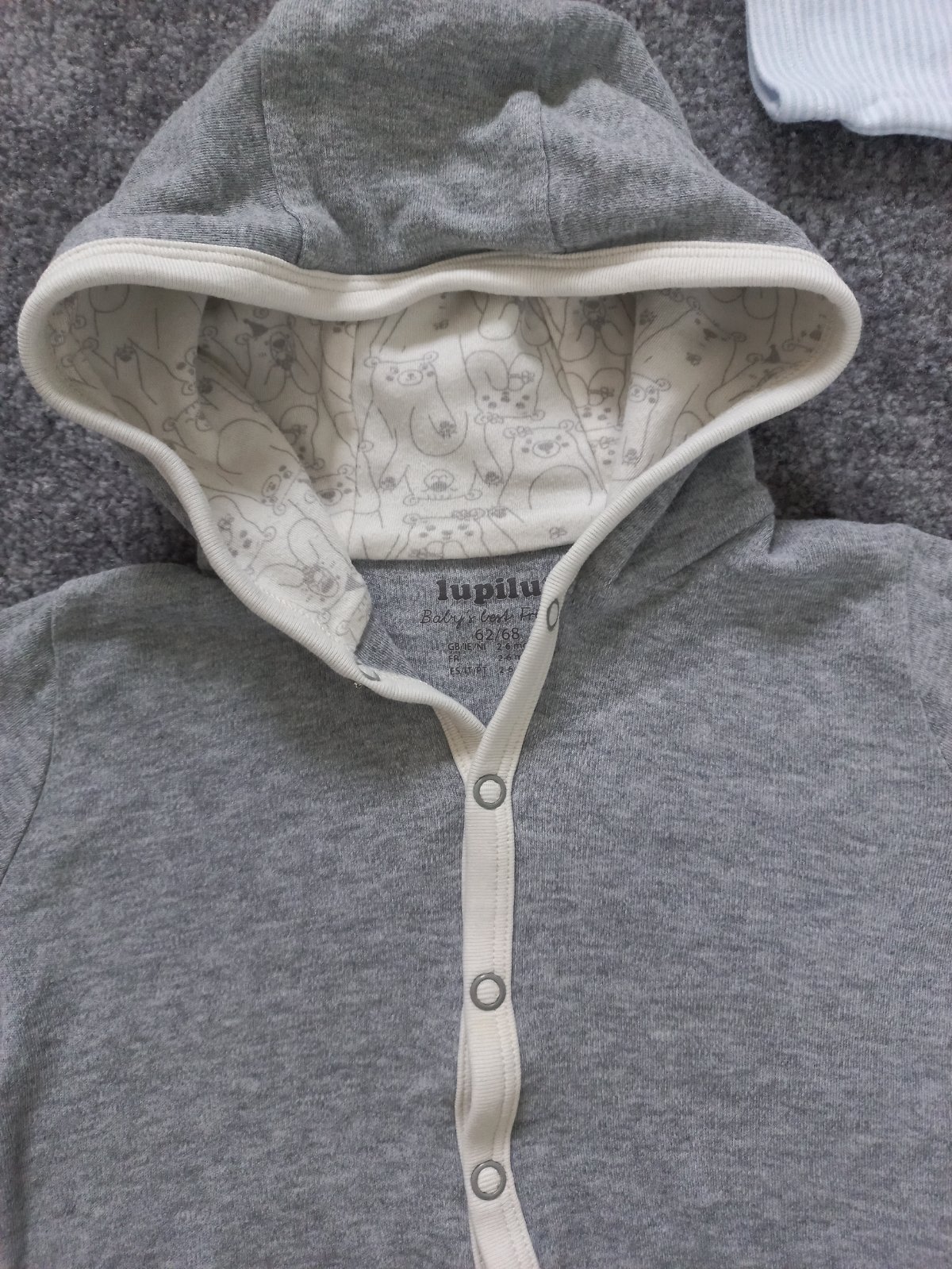 2 tenke, malo nosene mikiny s kapucnou, siva Lupilu, 62/68, bledomodra C&A, 62. Spolu 3€.