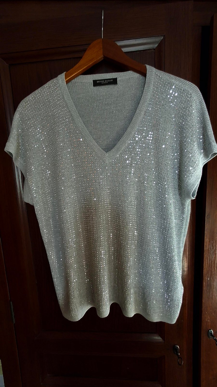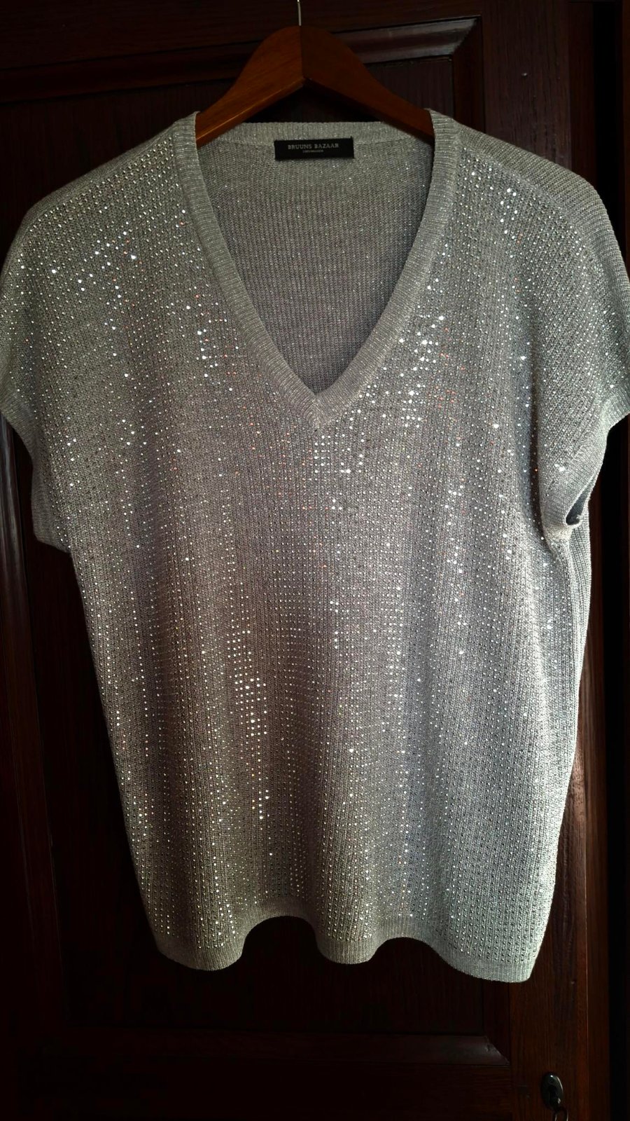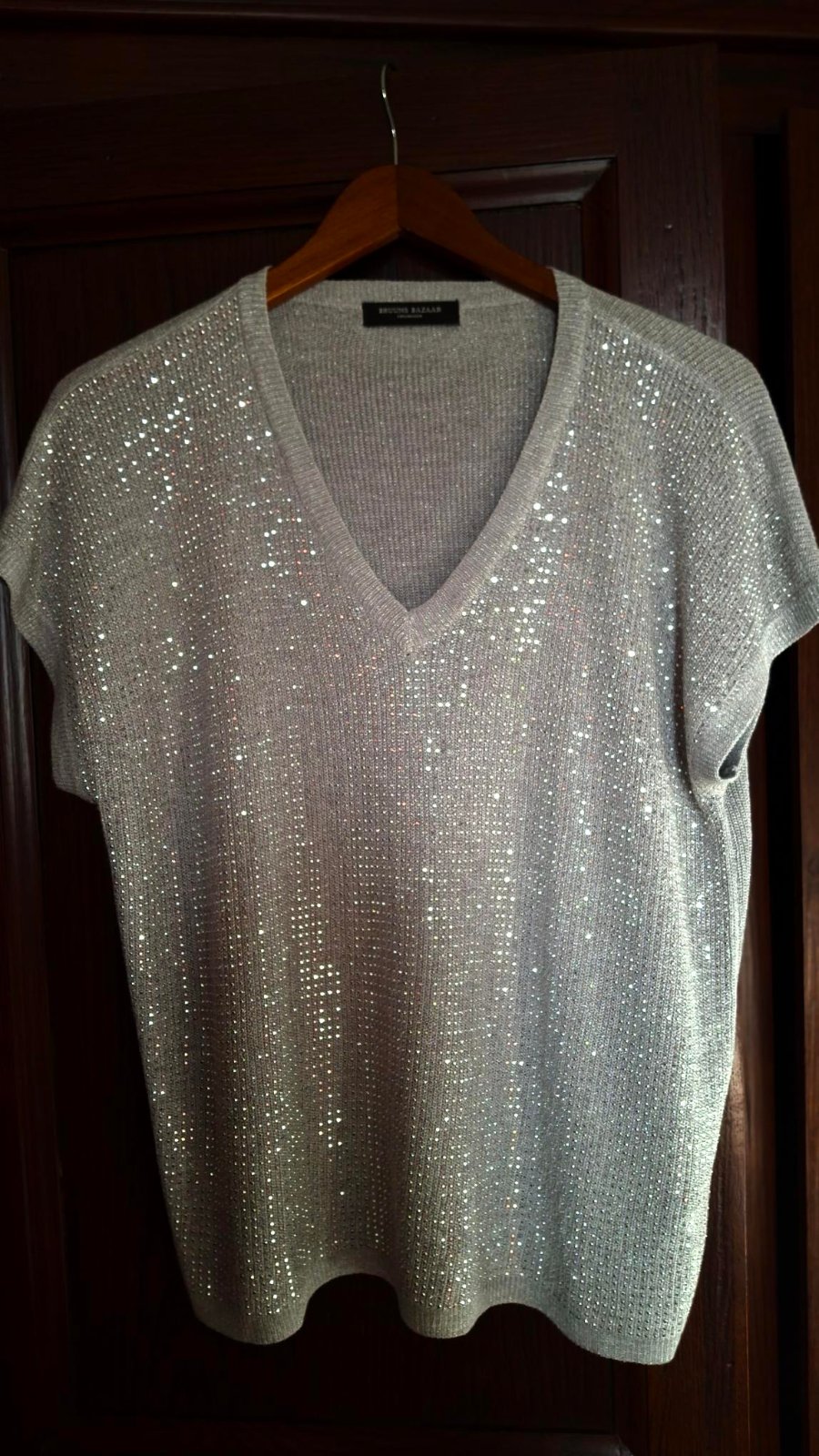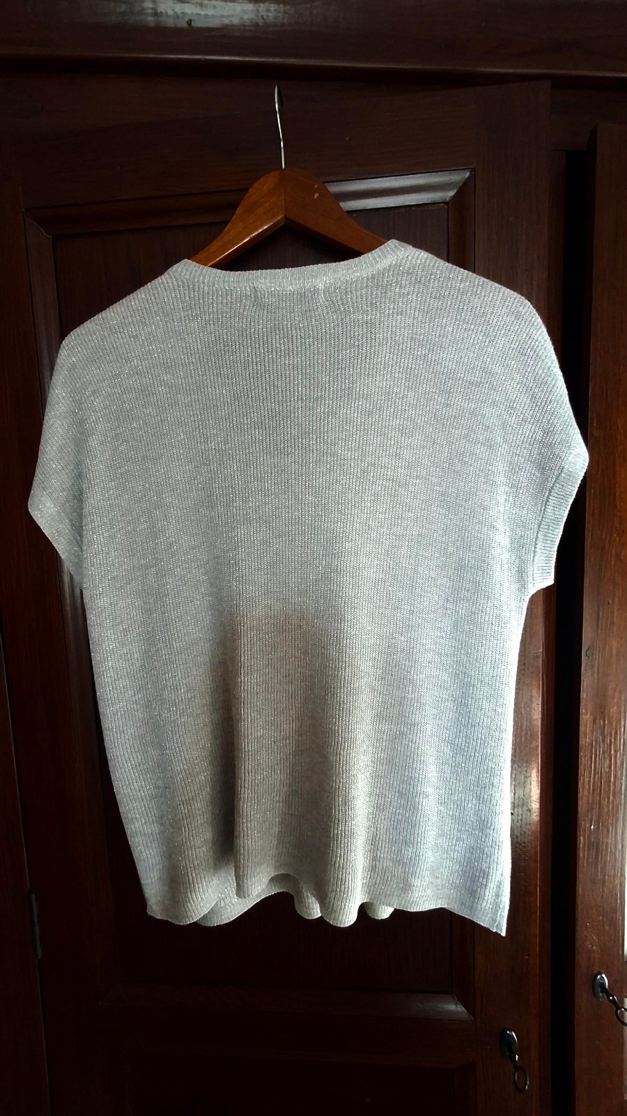 striebornosivý elegantný pulóvrik s kratkym rukavom...