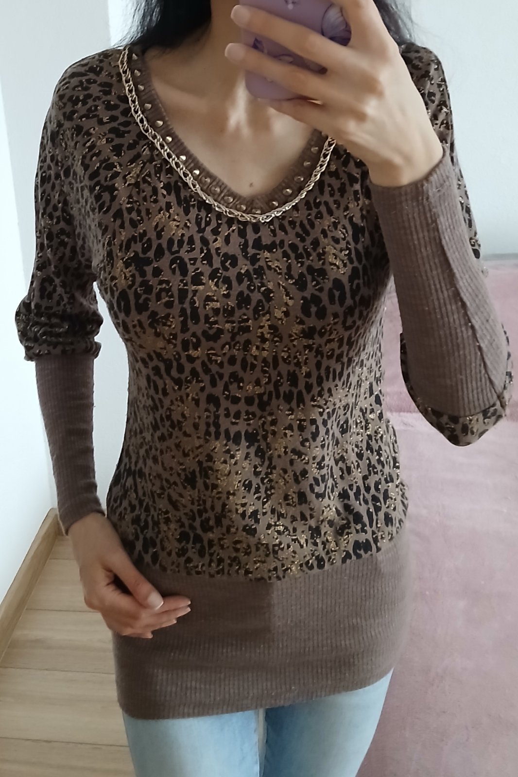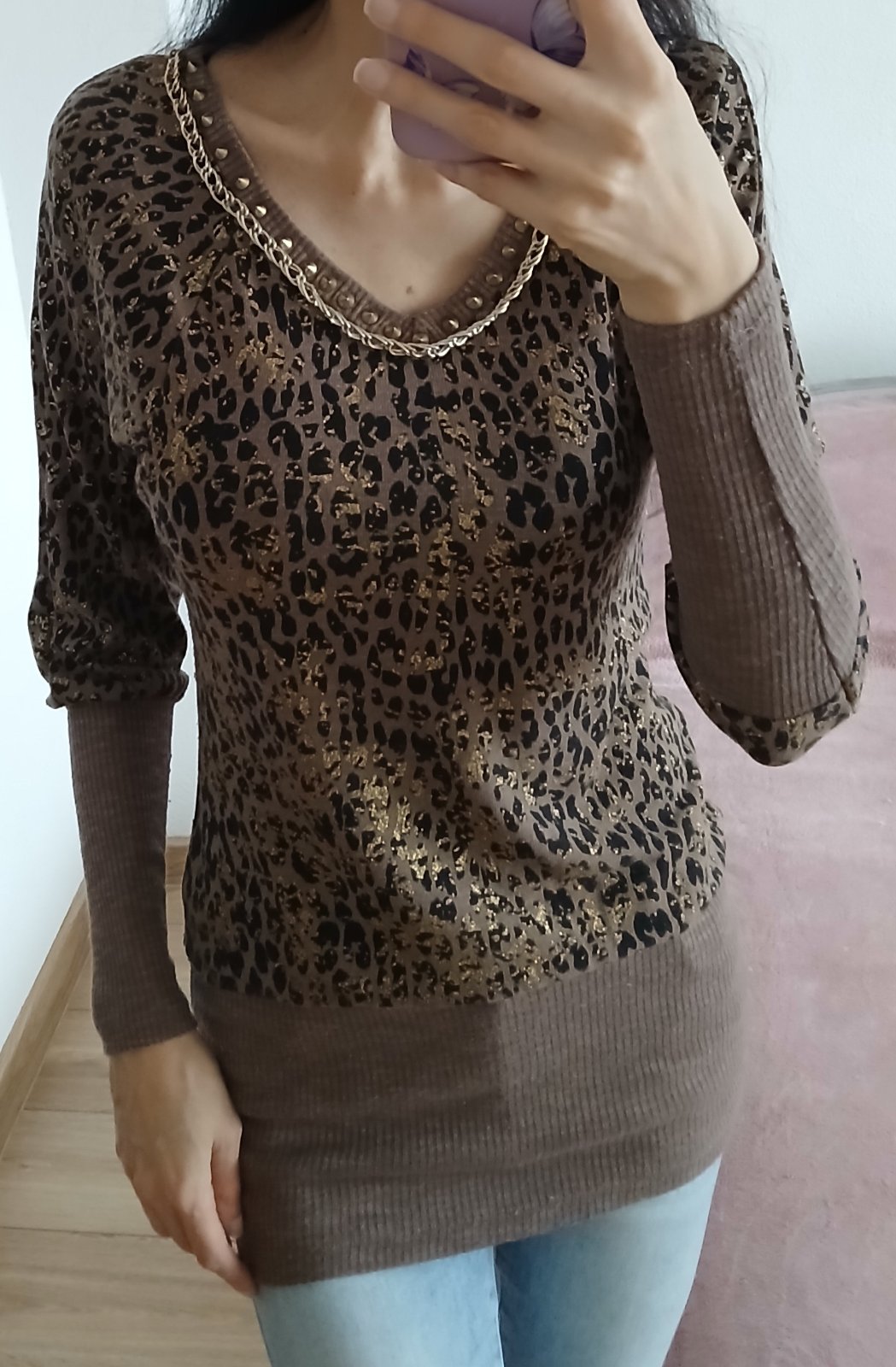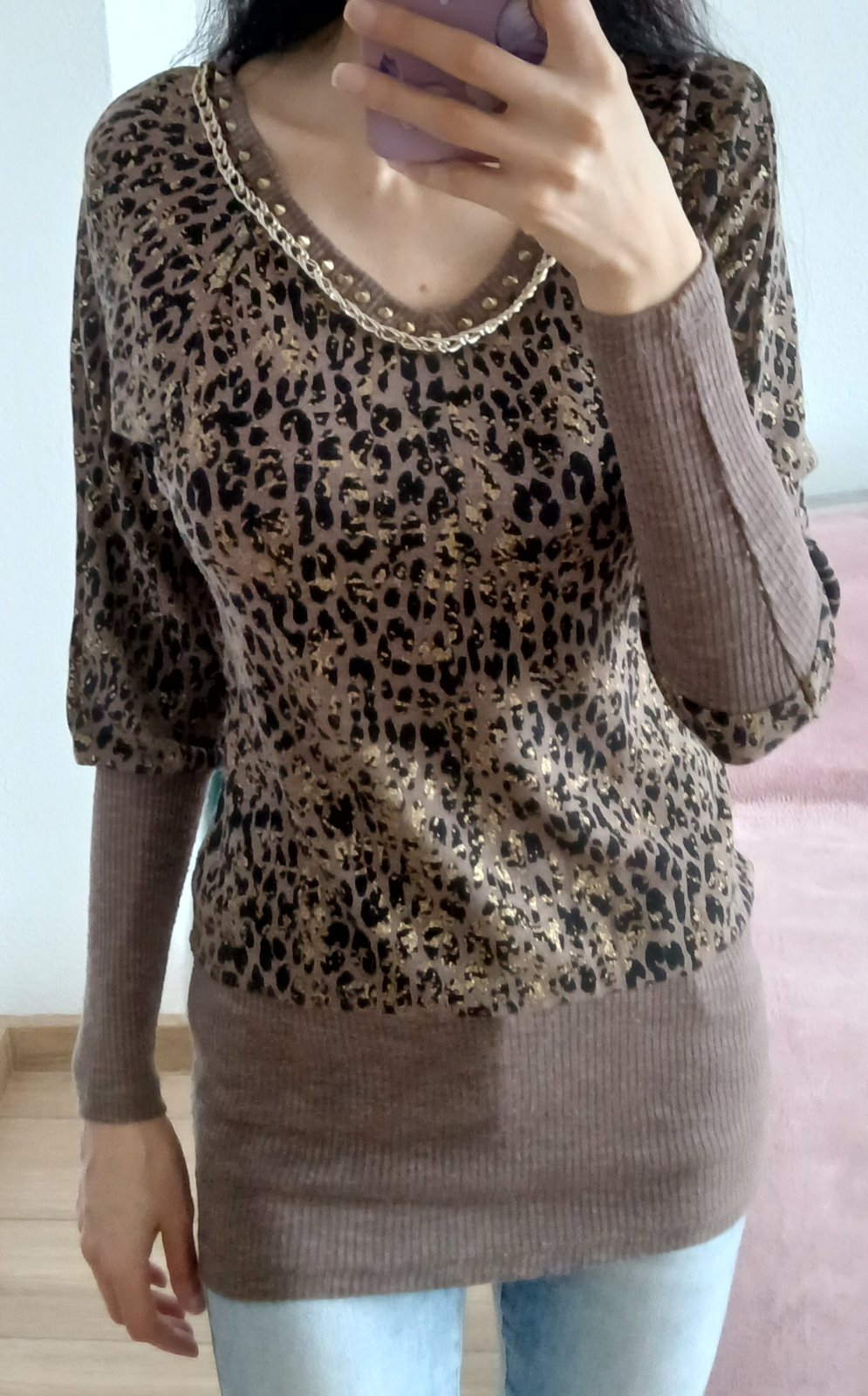 Kupovaný v butiku v Trnave, je naozaj veľmi kvalitný Krásna, výrazná farba, pekný odtieň hnedej Je príjemný na telo, na nosenie. Veľkosť M/L, premerajte-šírka cca 49x2, je to taký voľnejší, padavý ...