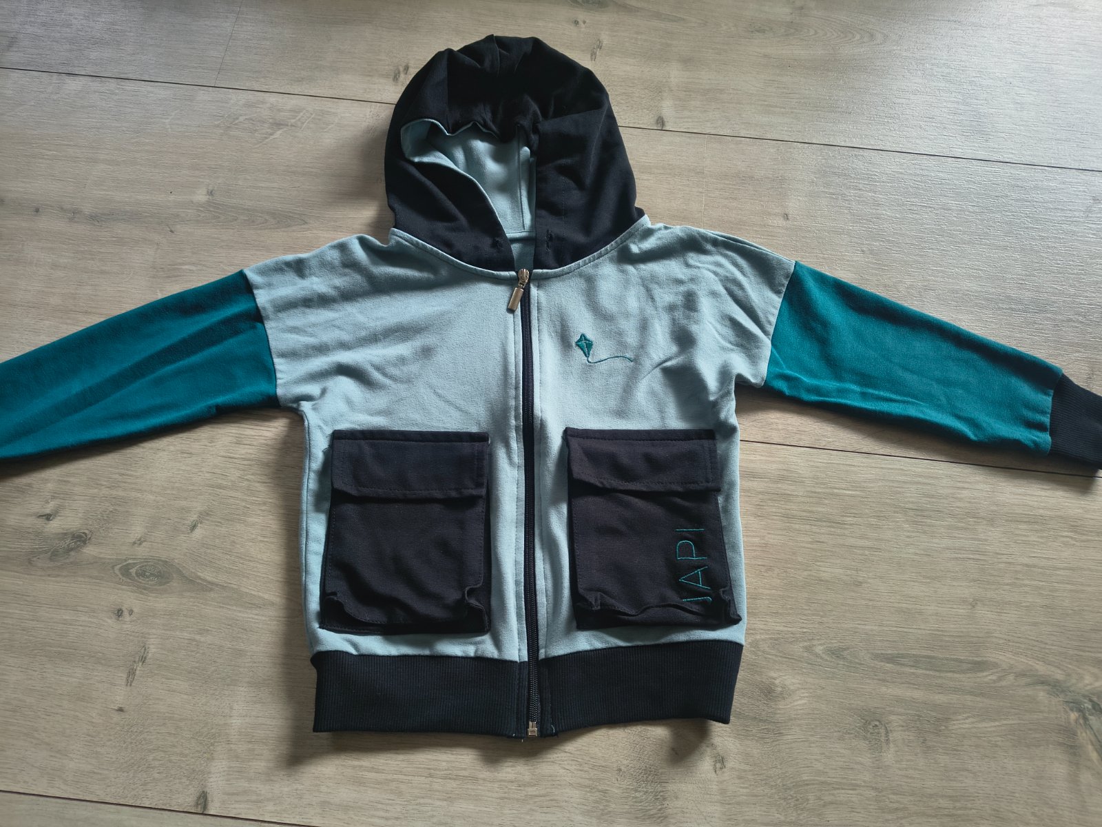 Predám krásnu mikinu na zips. Značka Japitex. Veľkosť písaná 122, ale skôr 116. Cena 15€