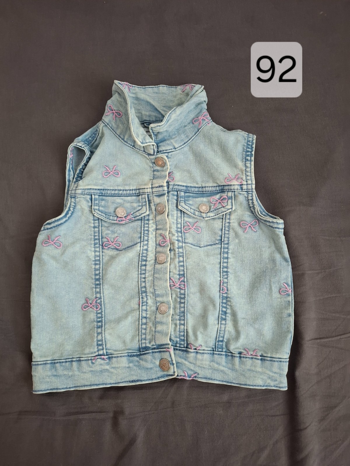 Predám riflovu vestu,nosené bez poškodenia. Veľkosť 92. Cena 2€+pošta