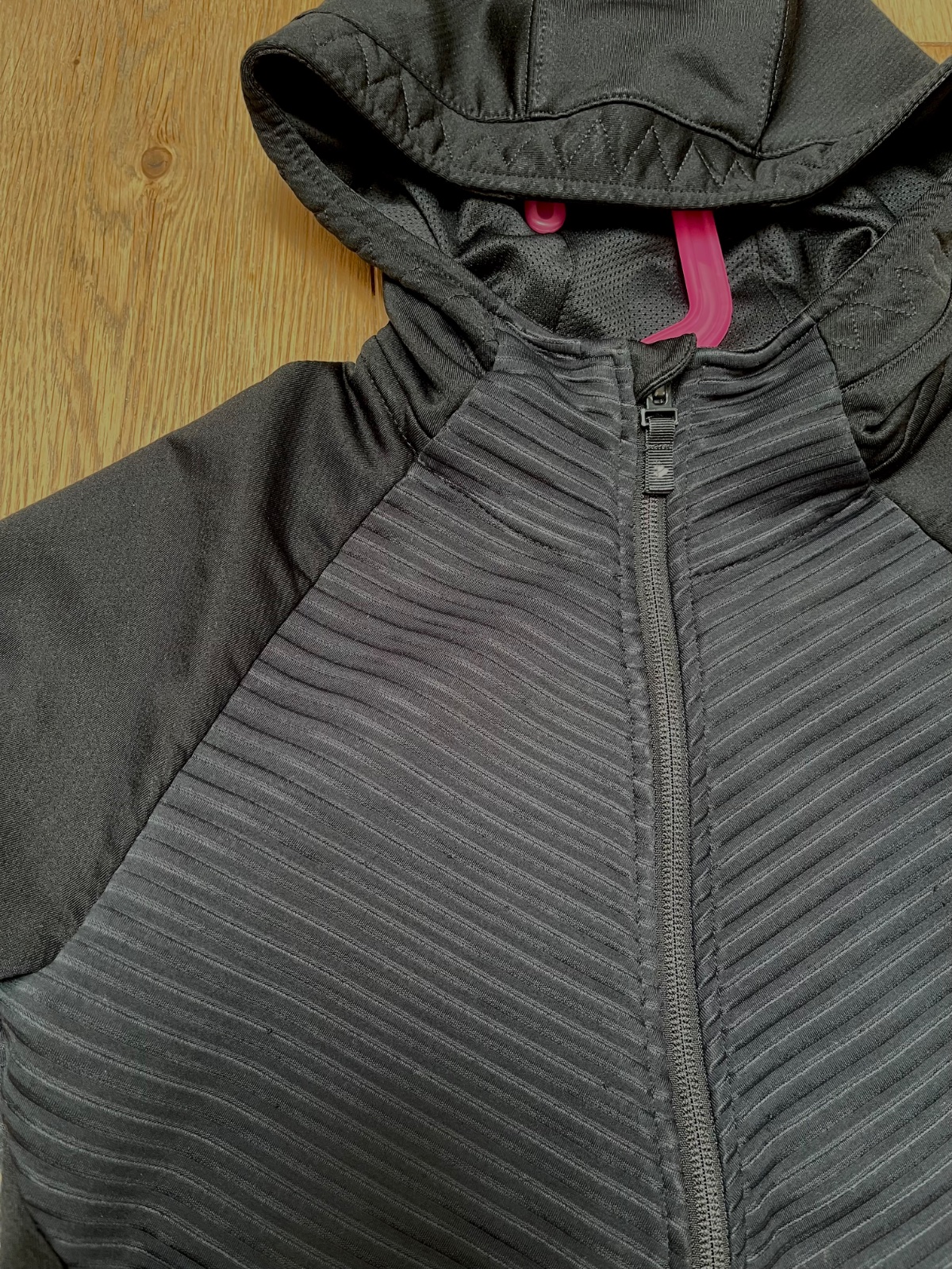 Kvalitná funkcna mikina, s prezliekaním na prsty, zips, troska zmolka na prednej strane, nie je vidiet. Veľmi odporucam túry, sport, beh. Dĺžka 54cm, sirka 43cm. Úprava Cold Dry.