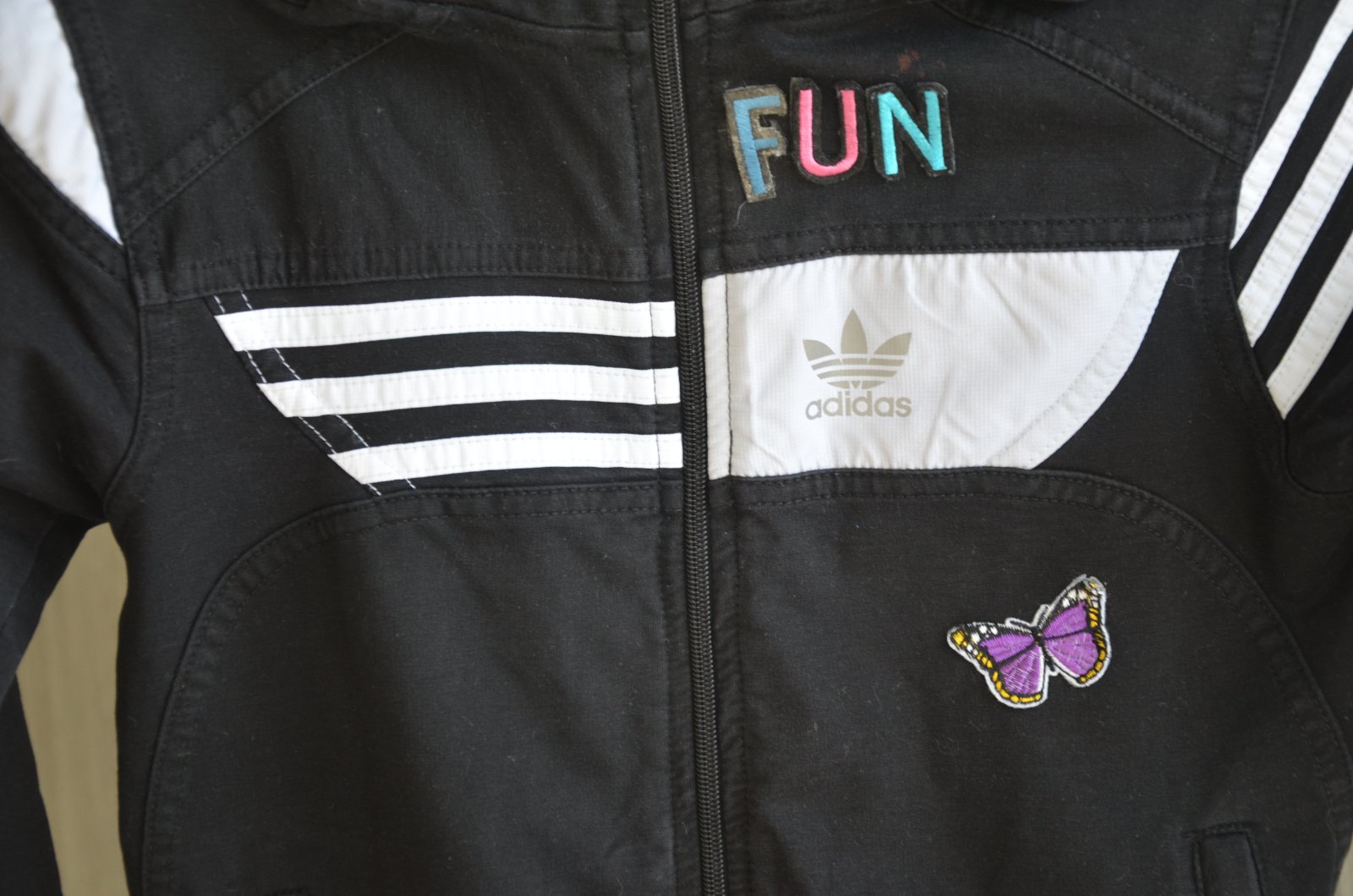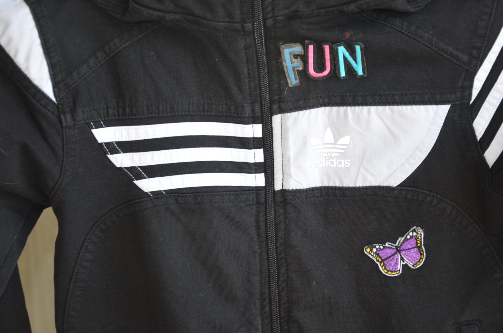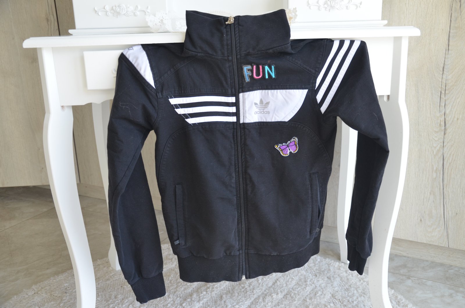 mikina je nosená-nie je originál!!!písaná veľkosť S-ale je menšia,premerajte-dĺžka 51cm,šírka pod pazuchami 2x41cm,rukáv od ramena 58cm,70%bavlna,25%polyester,5%lycra..nášivky sú dané-()motýľ+nápis FUN)...kuk aj na iné moje inzeráty