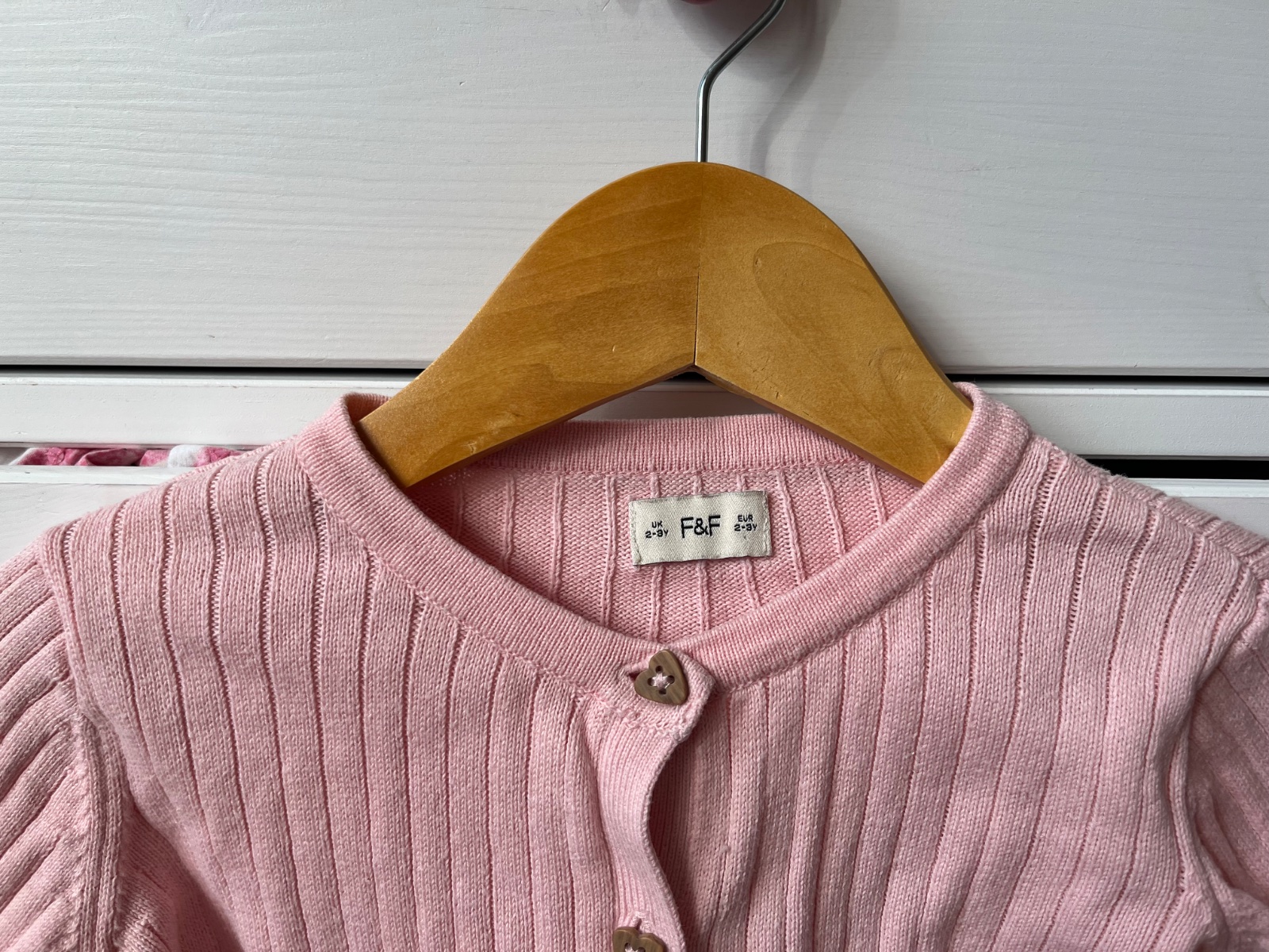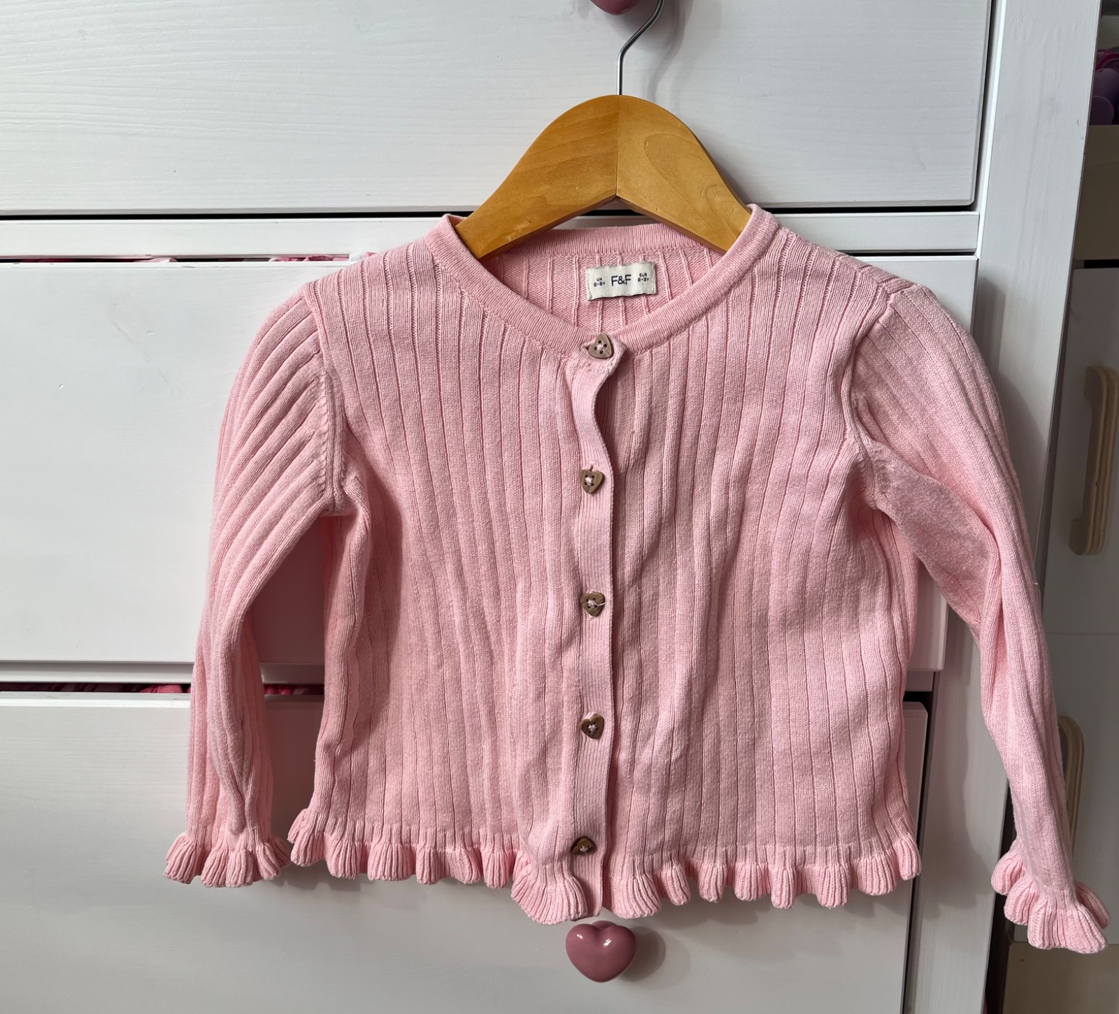 Bledoružový bavlnený sveter na gombíky, F&F, 98