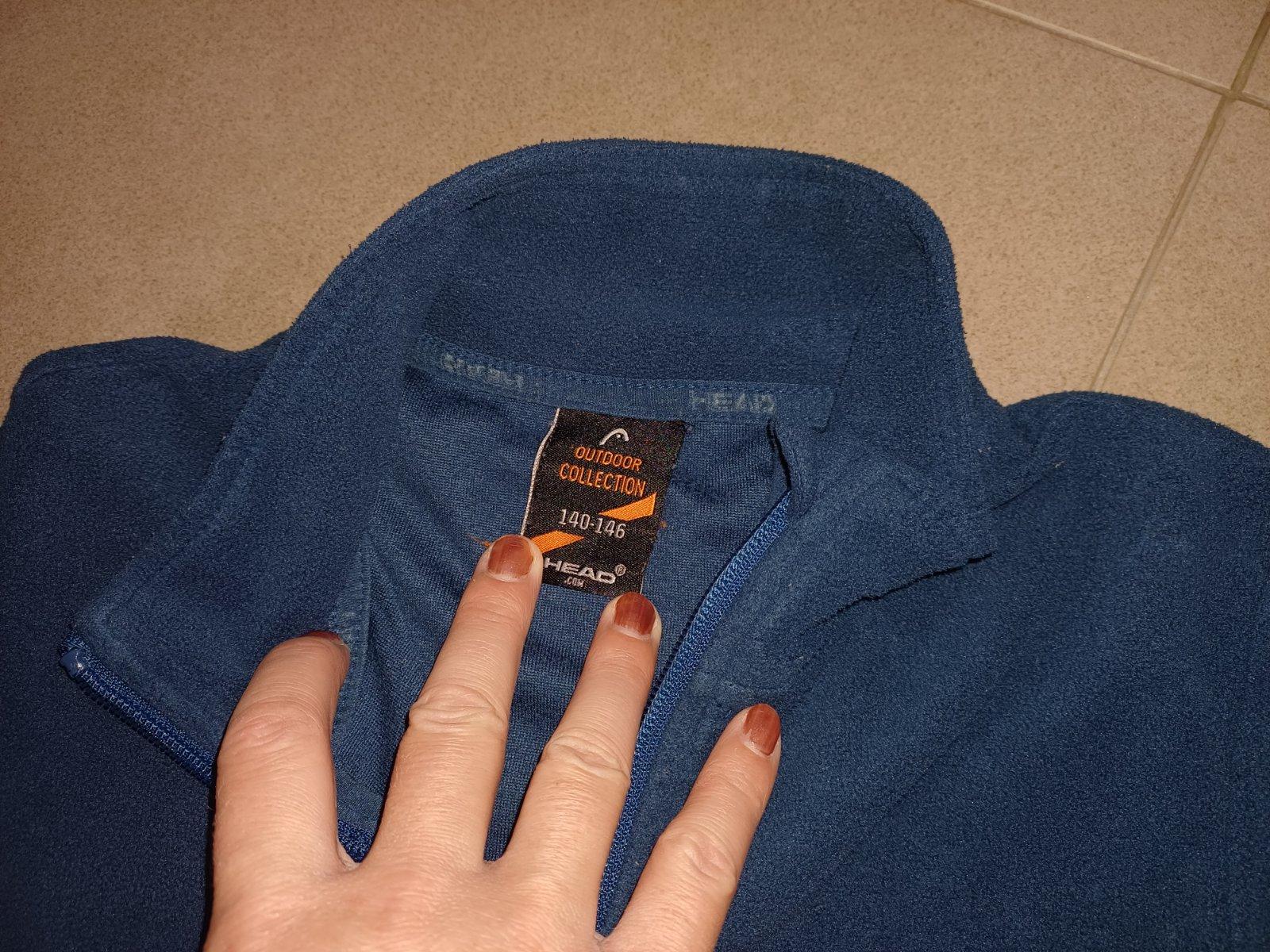 Predám zachovalú fleesovu mikinu značky Head. Zapínanie na zips so stojačikom ku krku. Nie je príliš hrubá. Uvedená veľkosť 140-146. Rozmery: dĺžka vpredu 54cm, vzadu 57cm, šírka pod pazuchami 42cm, rukáv od stojačika 66cm.