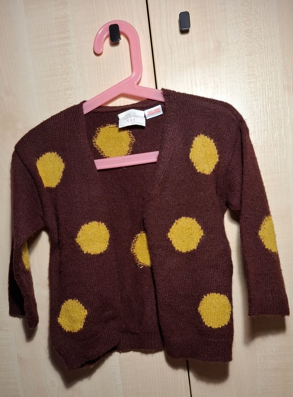 Predám svetrík vo veľmi zachovalom stave, bez žiadnych poškodení. Nosený len príležitostne. Farba je hnedo bordová; bez zapínania. Mäkkučký, veľmi dobre vyzerá na slečne.