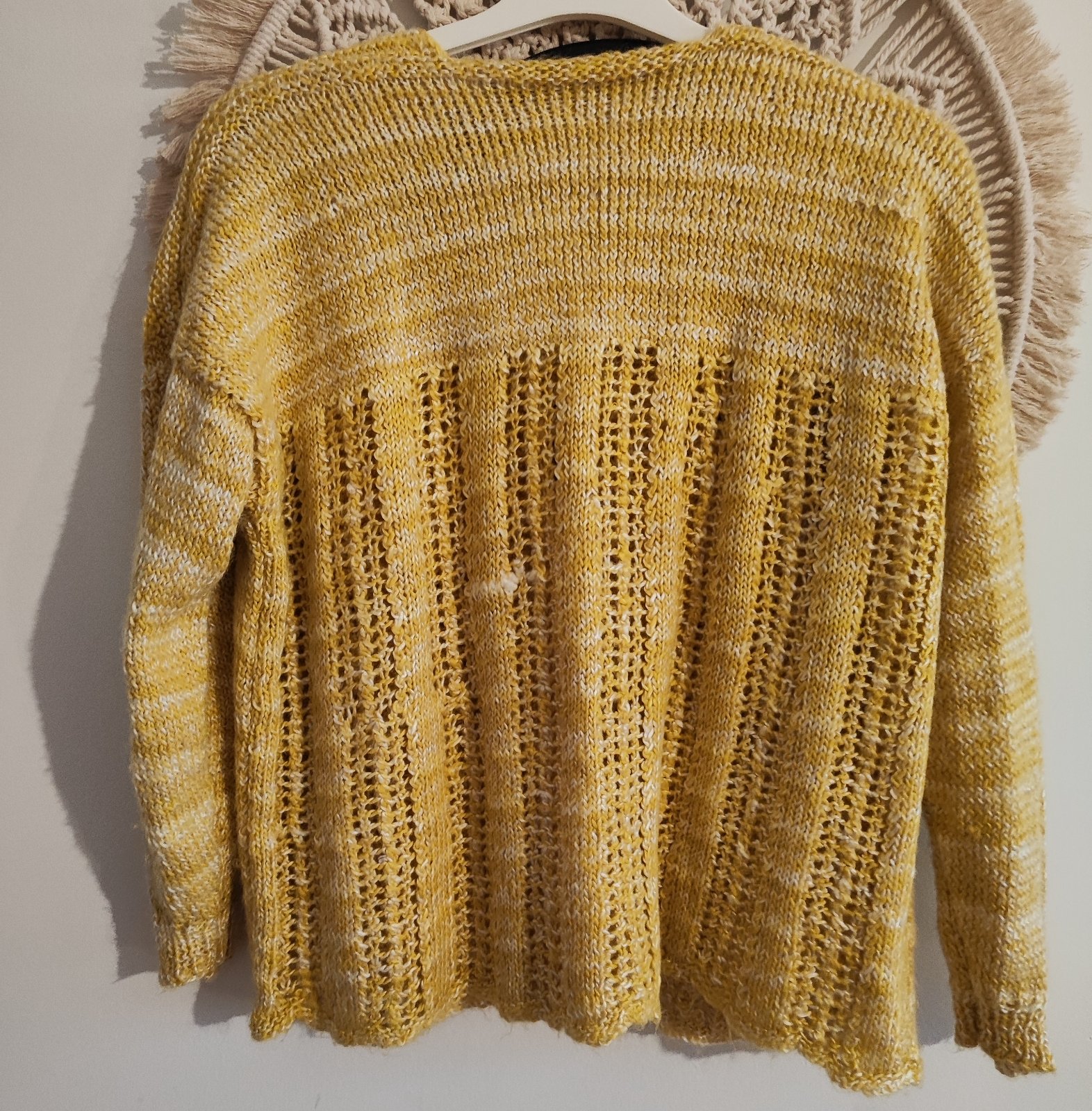 Svetrik s viazaním v predu. Nenoseny, iba vypraty. Príjemný materiál.