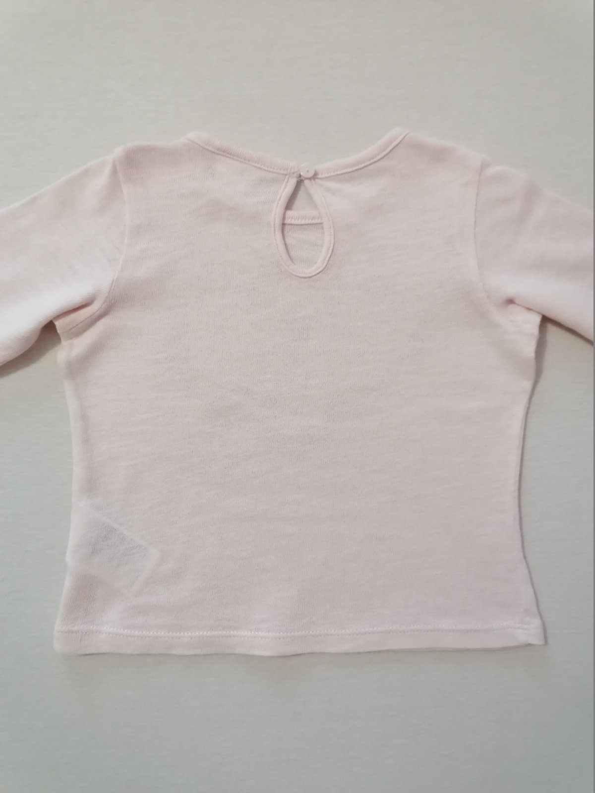 Velmi pekny, tensi pulovrik, z prijemneho materialu. Krasna, jemna, svetloruzova farba - nepodarilo sa mi ju tak dobre zachytit na foto. Velkost 80 - sedi na 80/86. Top stav.