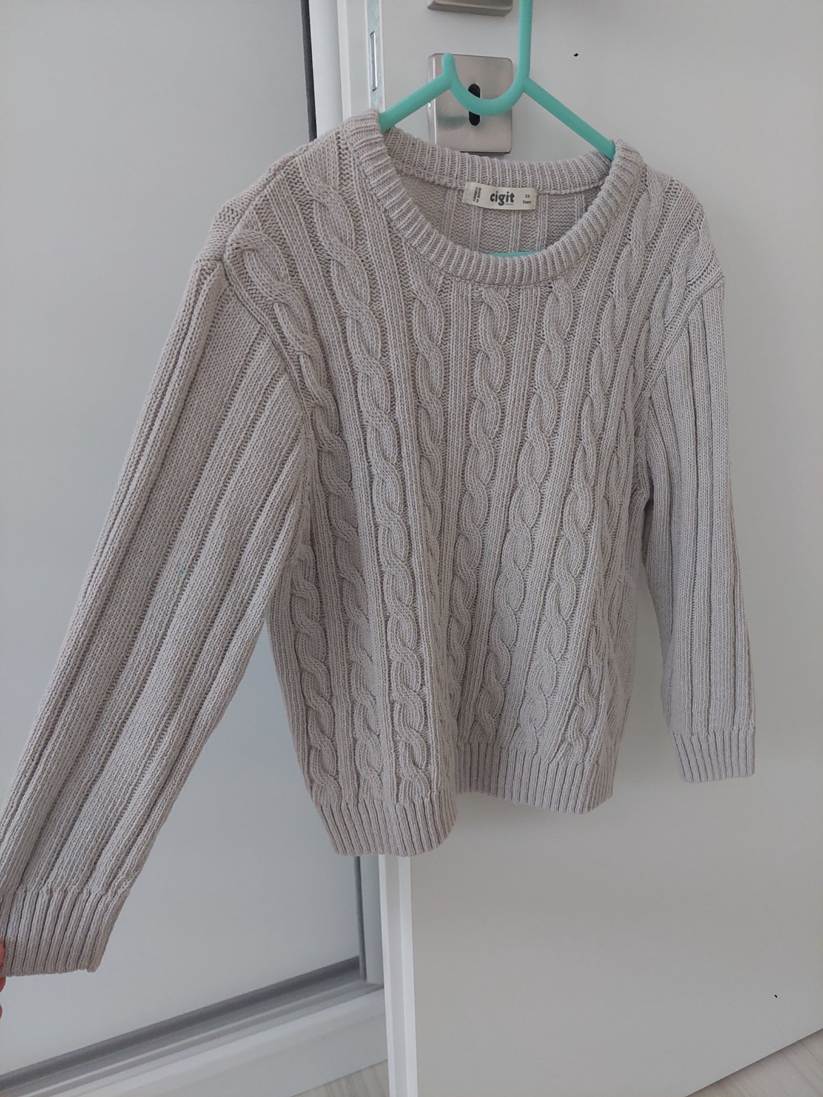 Predám pletený bledošedý sveter. Veľkosť 116 (5-6r).