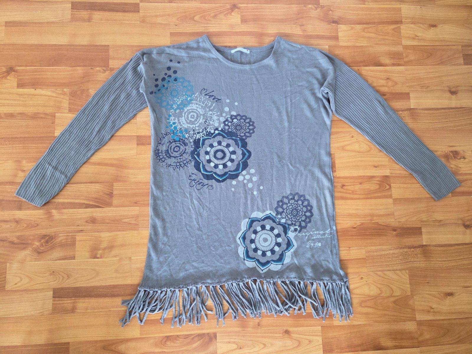 Moderný sveter so strapcami vo výbornom stave.