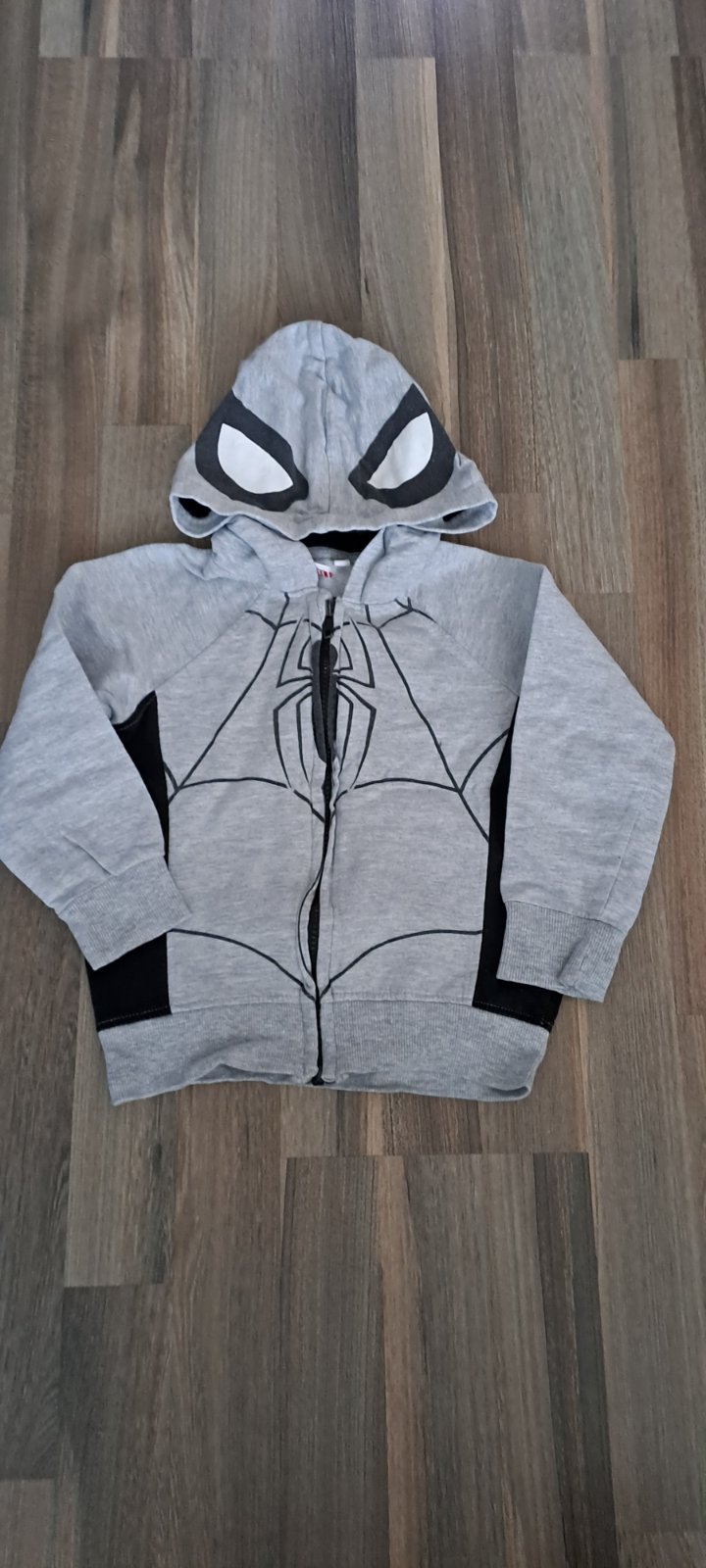Ponúkam na predaj mikinu na zapínanie (zips) s kapucňou, potlač SPIDERMAN (PAVÚKA – MARVEL, veľkosť uvedená 110 (reálne asi 104 cm), (3-5 rokov). Nosená, ale vo veľmi dobrom stave bez poškodení, fľakov, či dierok. Cena 1,5€.