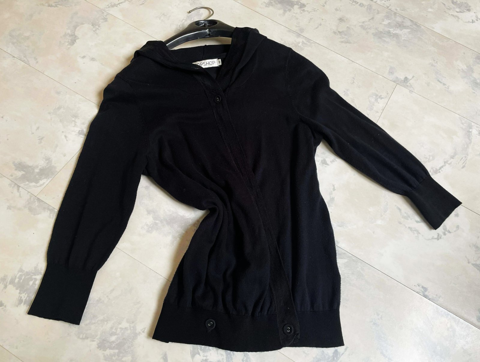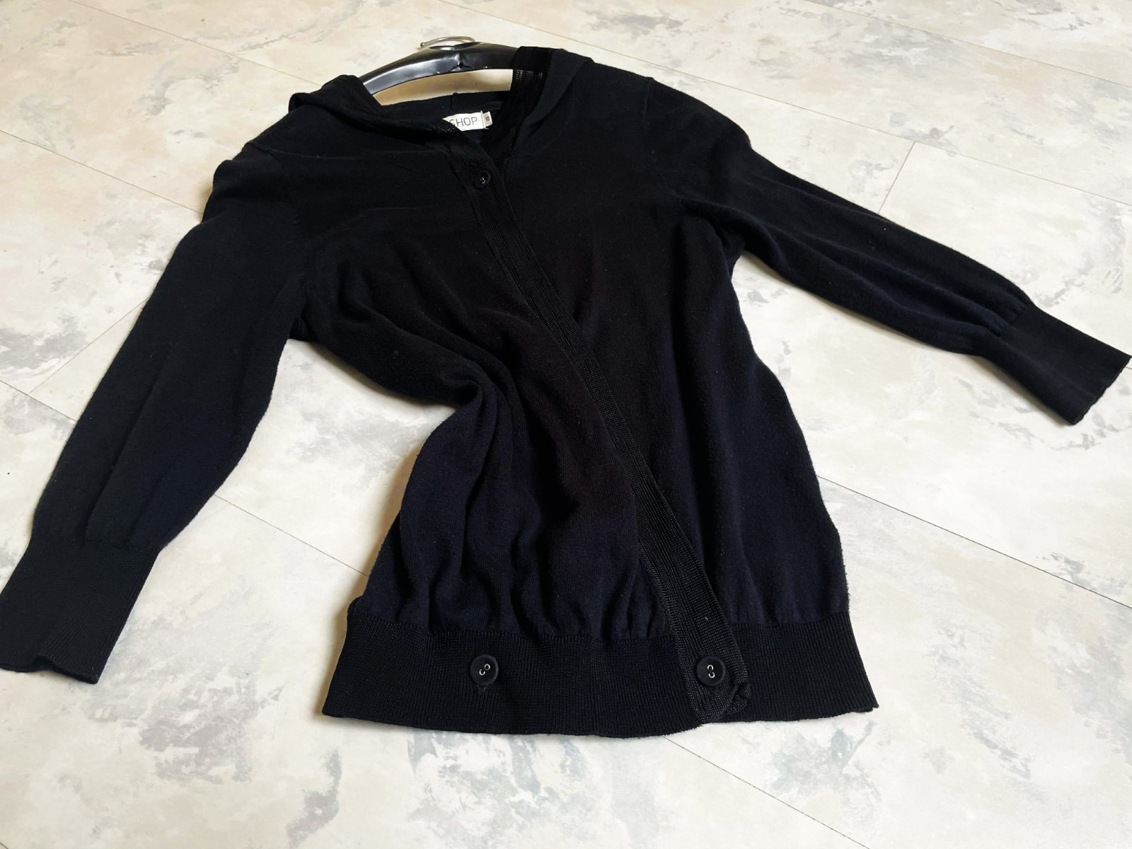 zaujímavý kvalitný svetrík,neznosený,top stav,s 3/4 rukávom,tenký,lemovaný jemnou lacetkou,zaujímavé prekrížené zapínanie,vzadu kapucňa - perfektný kúsok na prehodenie na leto a na jar,66% bavlna,29 % viskóza,5% nylon,značka vyfotená