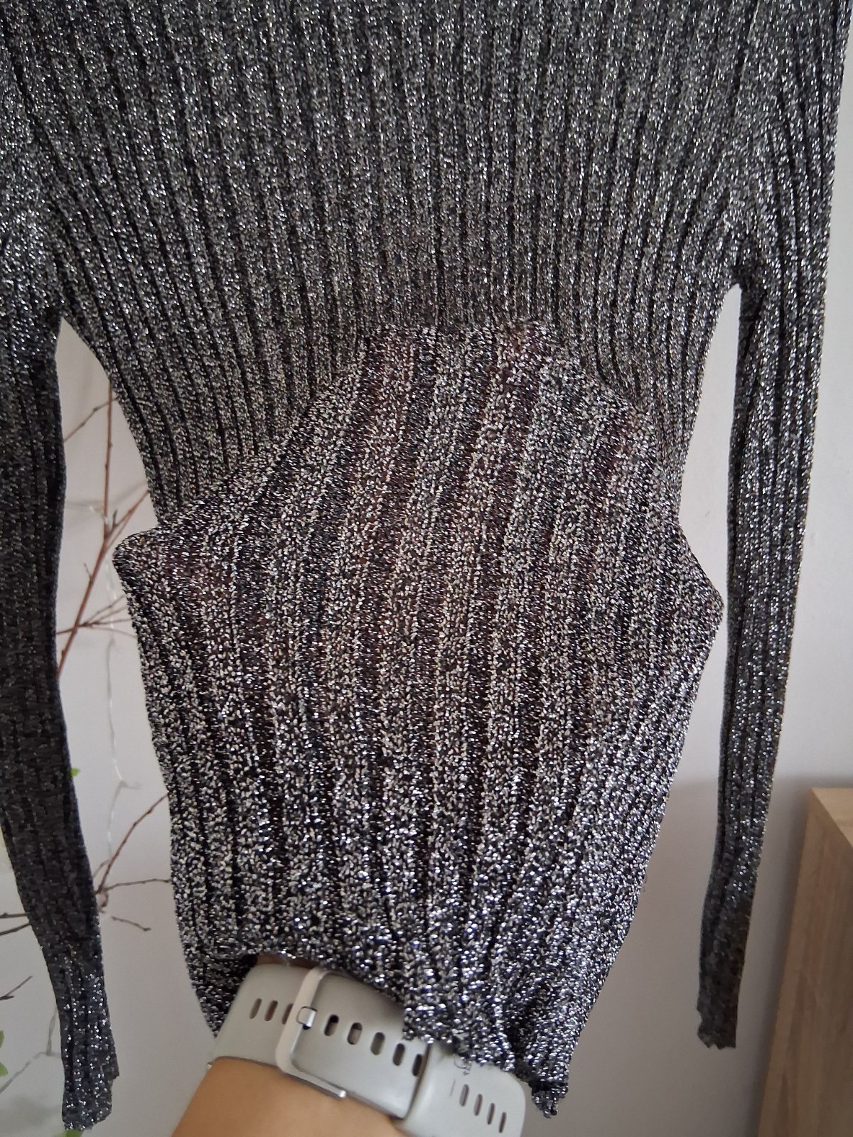 Tenký rolák s trblietkami, veľkosť 38, farba niečo medzi námorníckou modrou a čiernou, nový