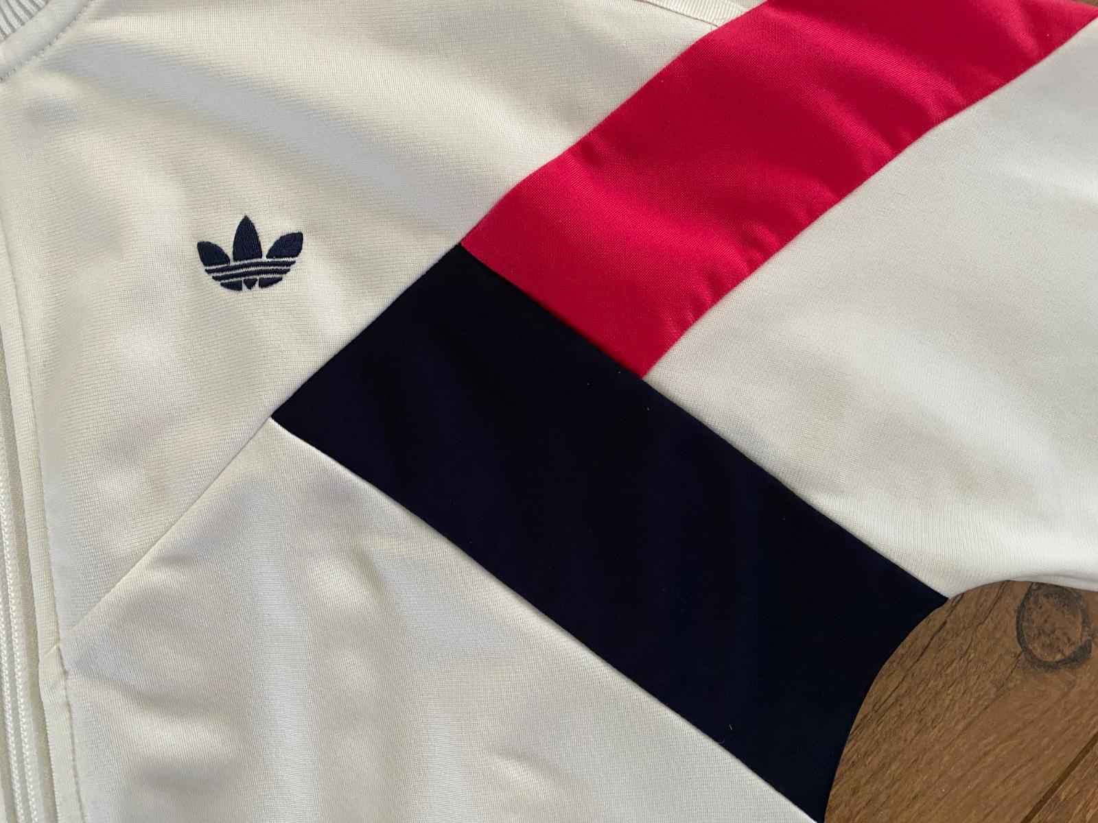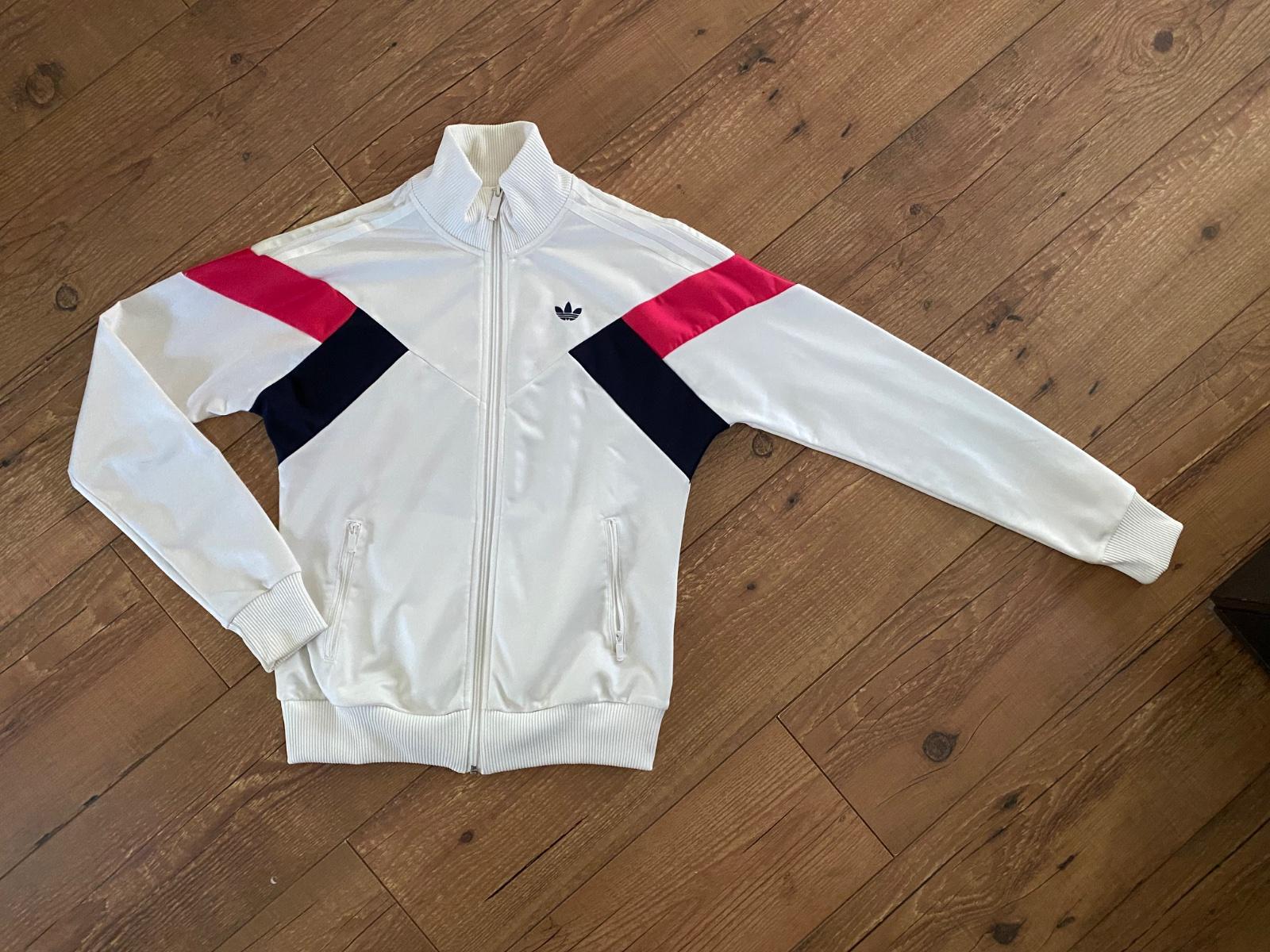 Farba off White až biela Kupovana nová a originál retro štýl a strih s ružovou , veľmi pekne sedí oblecena. Je to žensky strih a polyester. Poštovné 3,5
