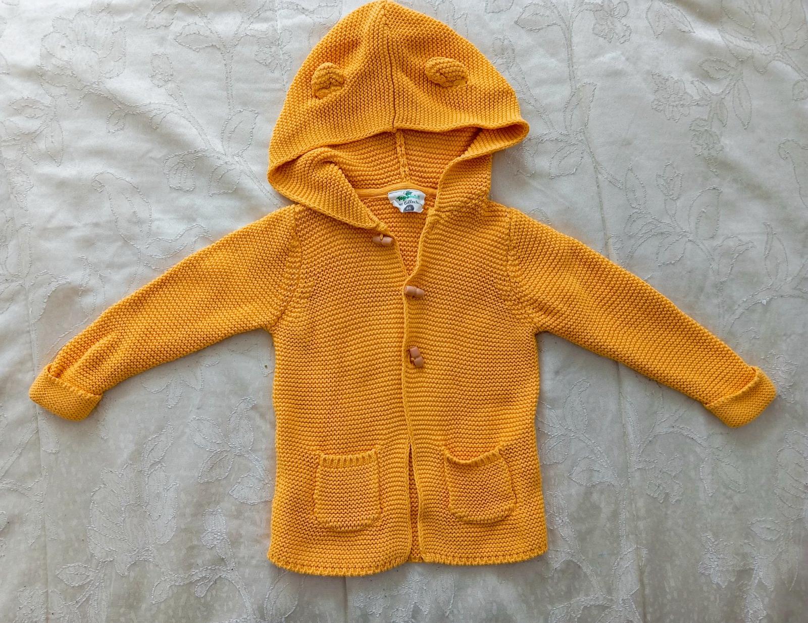 Pekný pletený svetrík na gombíky, s kapucnou. Bez poškodení.