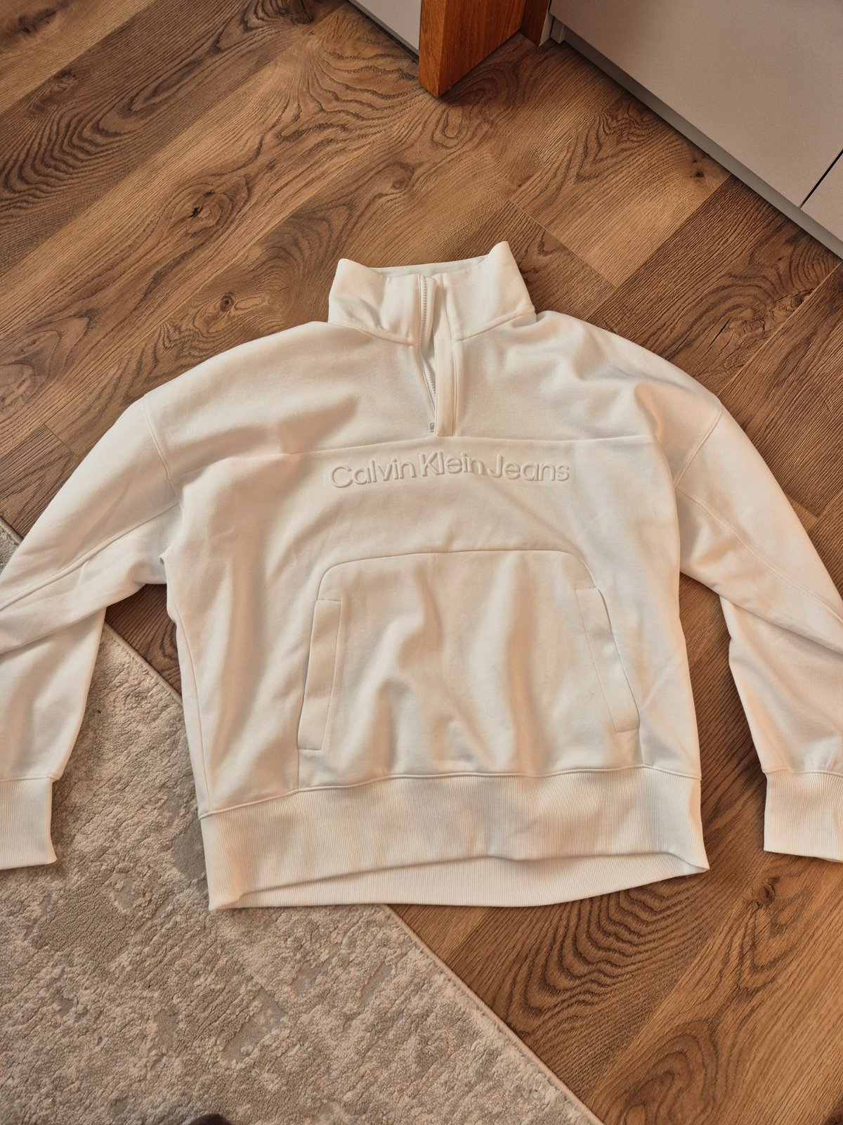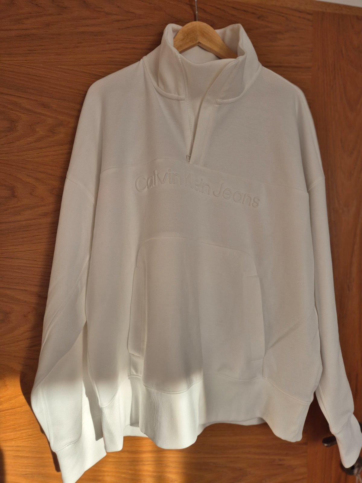 Zapínanie je iba kusok od krku, rolák je stojaci, krásny strih, velke klokanie vrecko vpredu