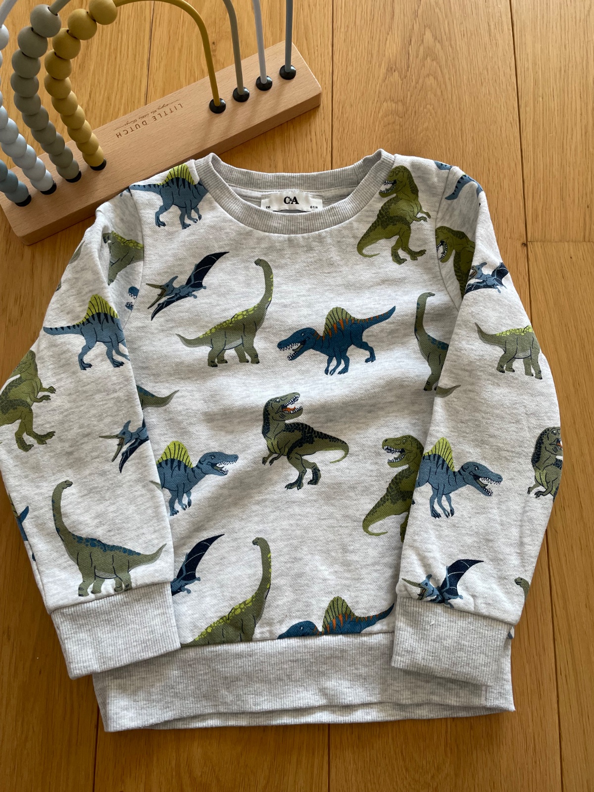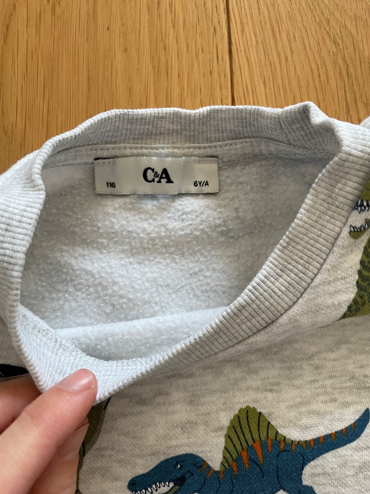 Ikona s dinosaurami C&A 116( reálne ale nosena s veľkosťou 110) . Miiina je hrubšia -to STV