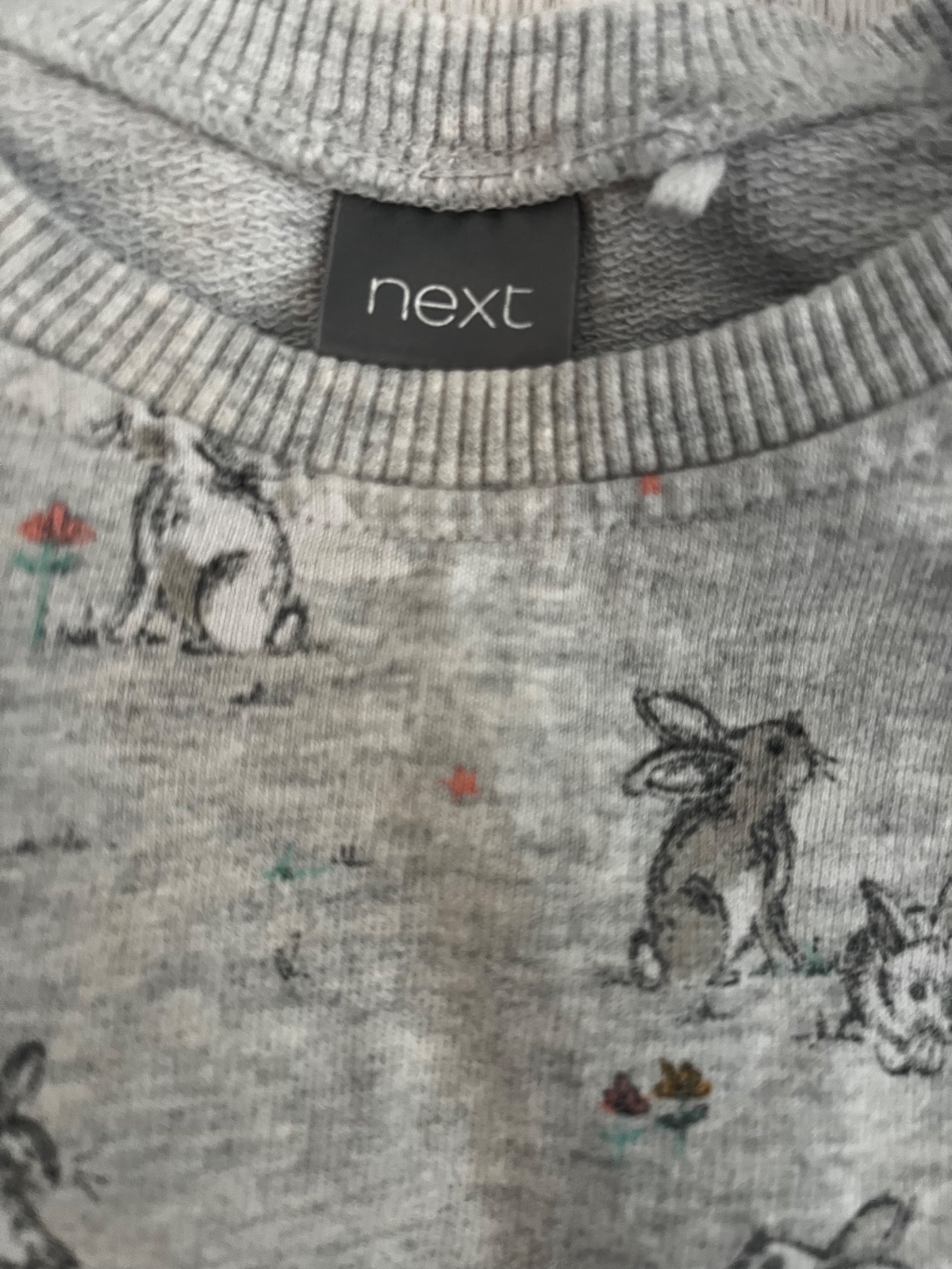 Predám bledosivú mikinu so vzorom zajačikov, značka: Next, veľkosť: 86 (12-18 mesiacov).