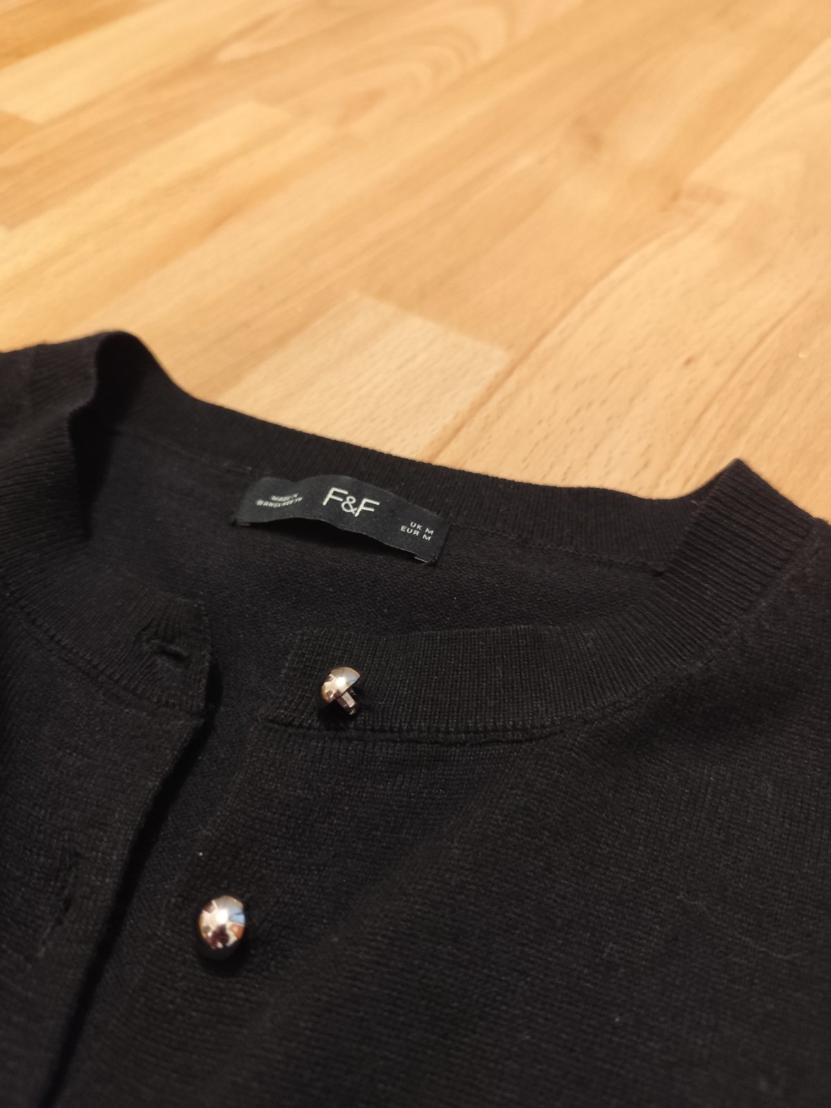Sveter, zachovalý s krátkym rukávom, F&F. Dĺžka je 84 cm, s opaskom tenkým, šírka pod pazuchami 43 cm. Veľkosť M. Cena 5 eur.