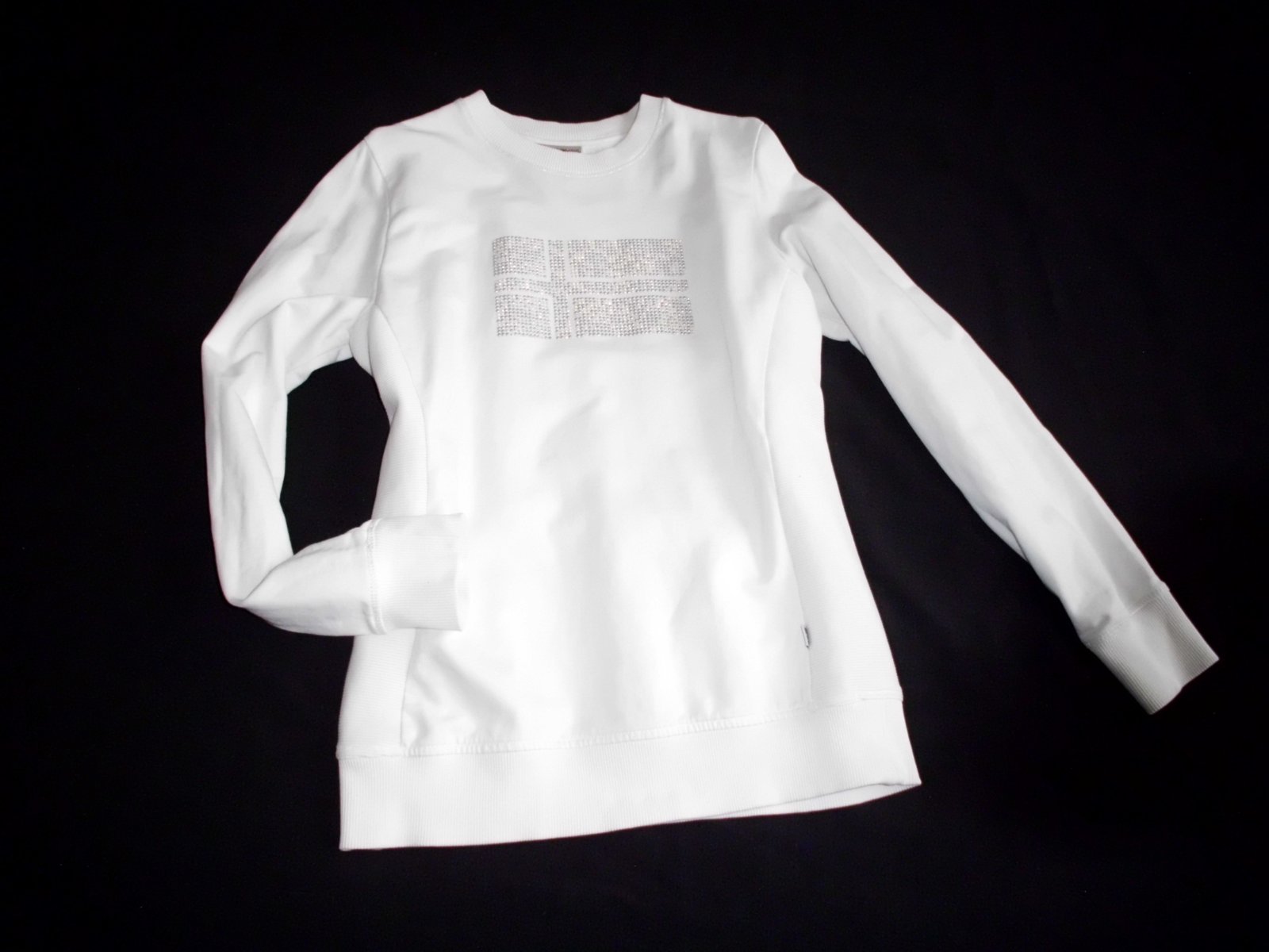Predám dámsku mikinu Napapijri vel. XS ale aj na S-M, šírka 48 cm, dľžka 66 cm, rukáv od pleca 63 cm, príjemný stredne hrubý materiál, biela farba ,super stav