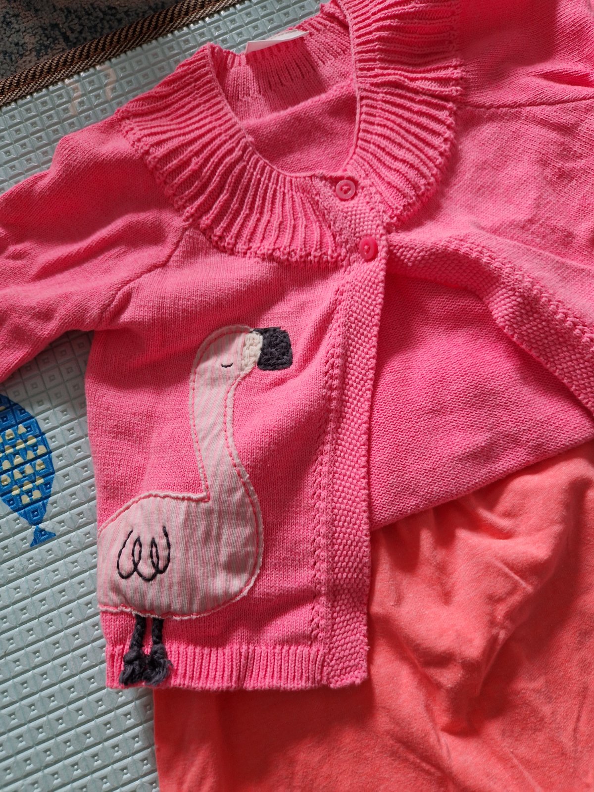 Tenší bavlnený svetrík, 100% bavlna. Farba nie je taká sýta ako na fotkách, má aj žmolky na niekoľkých miestach, ale stále krásny, parádu ešte urobí. Veľkosť písaná 92, ale dá sa nosiť už od veľkos...