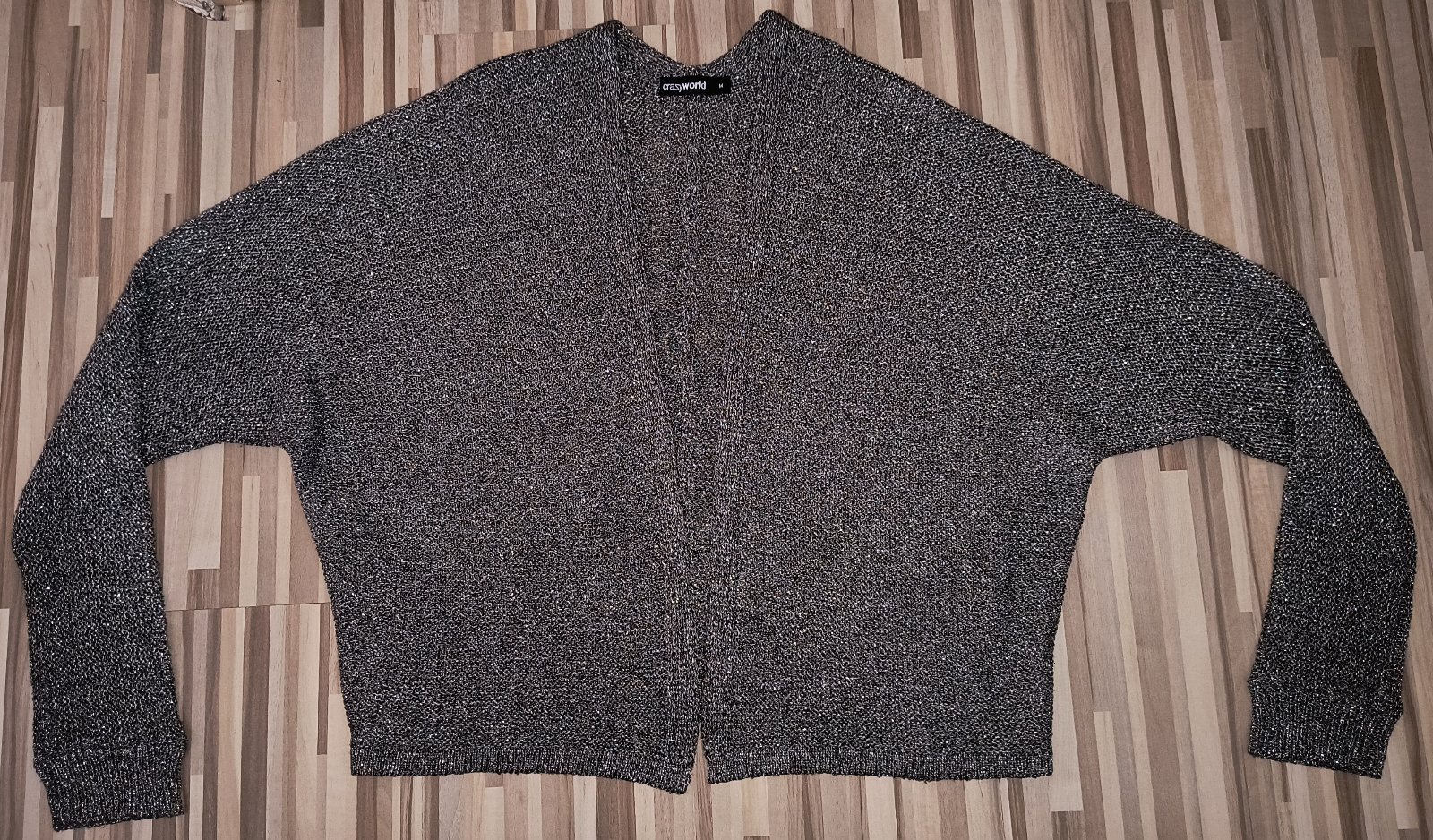 Predám pekný svetrík bez gombíkov pretkávaný striebornou nitkou, bol 2x oblečený je v super stave bez poškodenia, veľkosť M, cena 3 eura