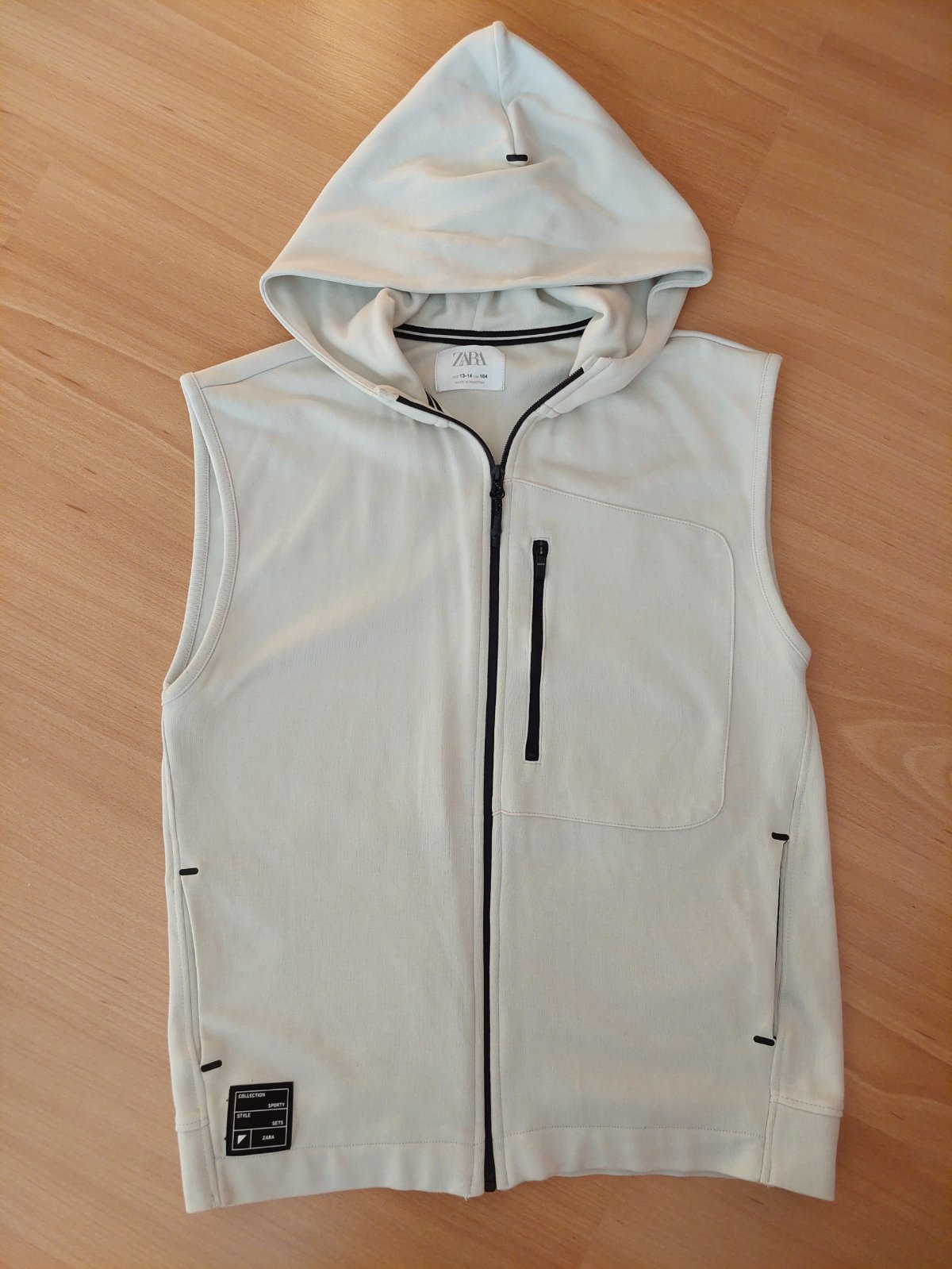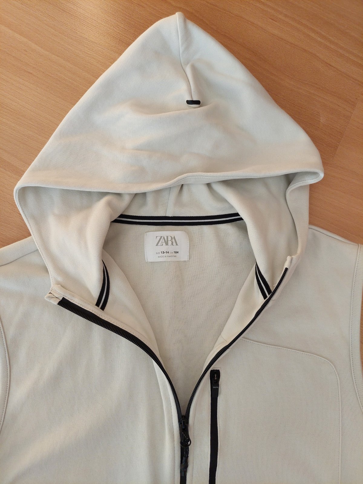 Nezateplena mikinova vesta zn. Zara, velk. 164 (aj zodpoveda). Oblecena parkrat, v dobrom stave, bez poskideni, bez flakov. Vesta je nezateplena - nema zvnutra chlpok (vid detail foto).