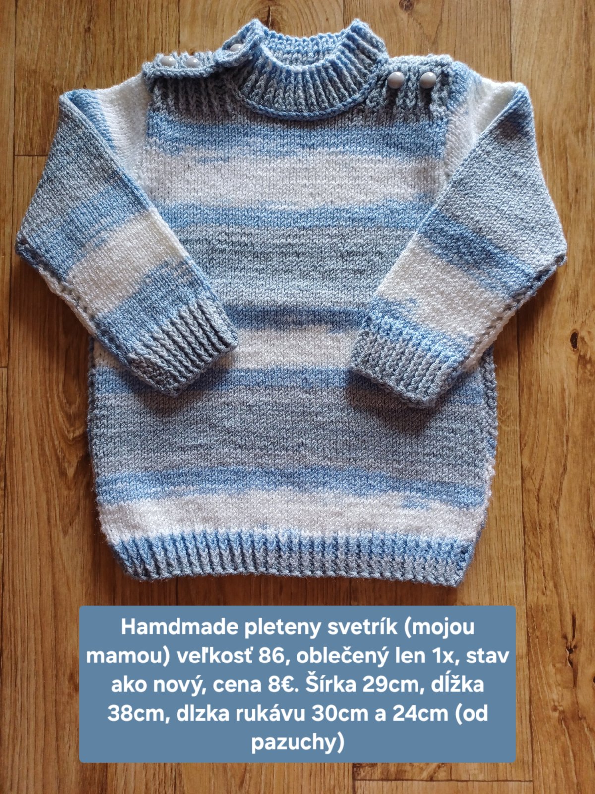 Ahojte 😊 Keďže tu rada nakupujem, idem skúsiť aj predávať. Mám väčšinou chlapčenské veci ale nájdu sa aj dievčenské. Väčsina je po jednom dieťati, v super stave, žiadne dierky ani fliačky, ak by predsa bolo nejaké poškodenie, mám to v popise. Pri kúpe viacerých vecí sa viem dohodnúť aj na cene. Posielam po prevode na účet buď packetou alebo poštou podľa cenníka. Osobný odber je možný v Piešťanoch pri Lidli na bratislavskej. Recenzie mám najmä z fb zo sreenov, v prípade záujmu pošlem.