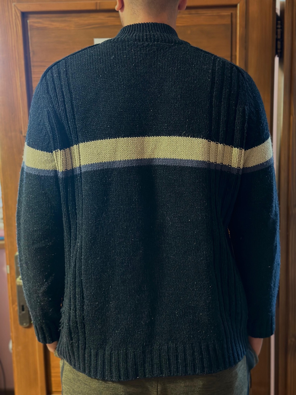 🔹 Stav: Nosený, viditeľné žmolky (viď foto) – odporúčam odžmolkovať, inak bez vážnych poškodení