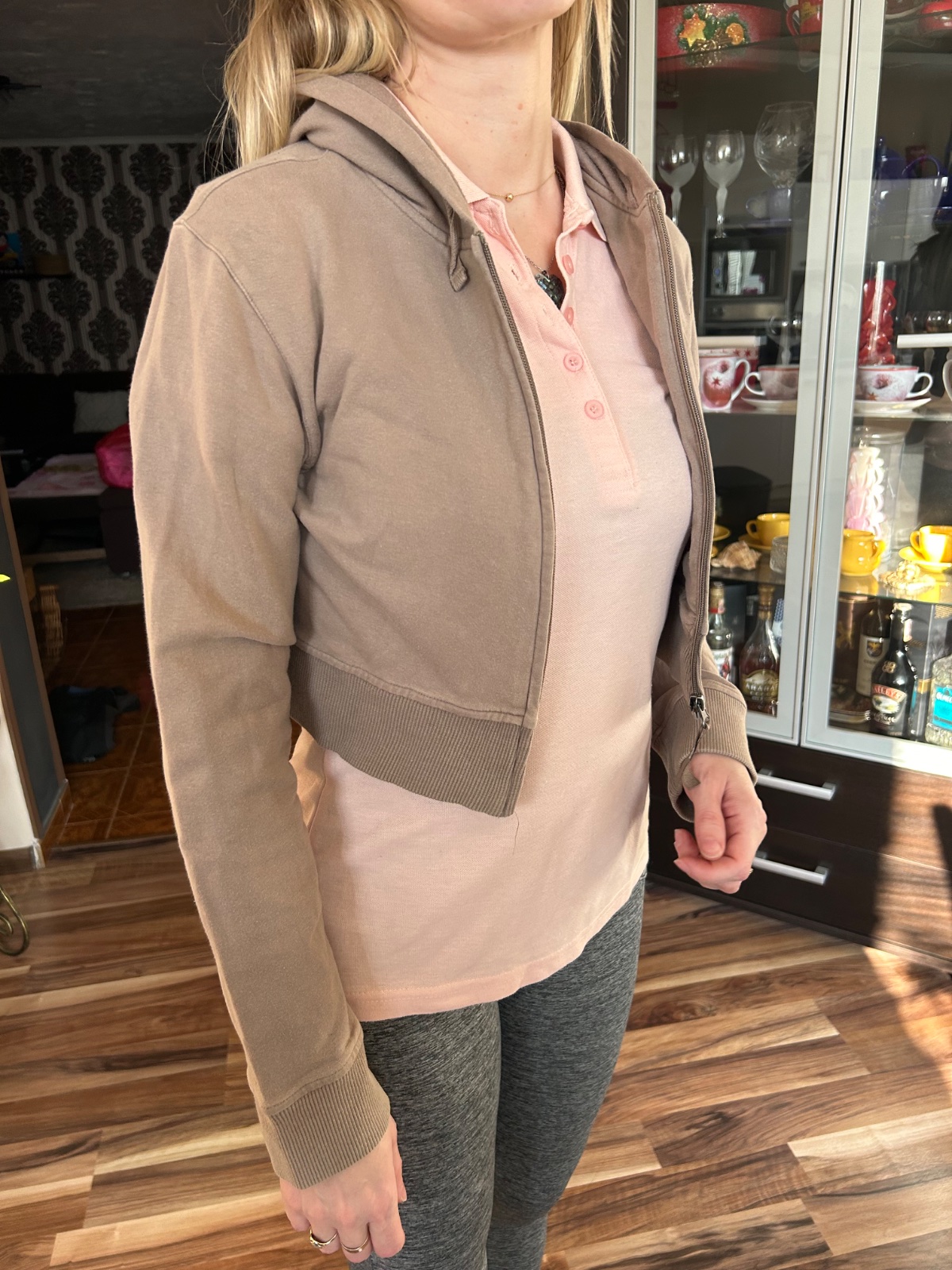 Príjemný materiál. Oblečený párkrát. Veľkosť XS, sedí kludne aj na S,M. Na chrbte zips. Cena 7€ + poštovné.