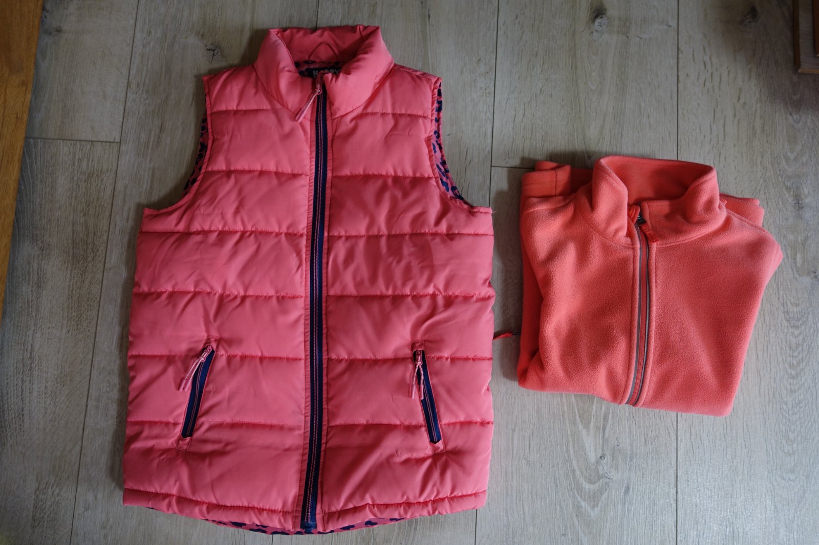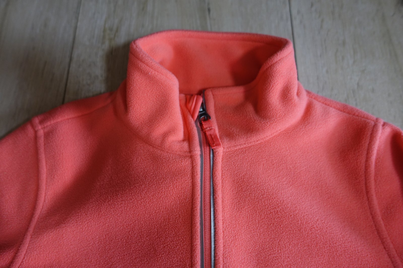 Predám prekrásnu lososovú mikinku vo veľkosti 134/140. Mali sme ju max 2-3x spolu s vestičkou na poslednej foto, ale je v peknom nosenom stave. V cene je zarátaná iba mikinka bez vestičky. Nedá sa mi ju pekne nafotiť, v skutočnosti je oveľa krajšia. Je hrubšia, ako klasické mikinky, skôr mi pripadá ako softshellová bundička na von. Má krásne reflexné prvky okolo zipsov. Mikinka nemá ani fľaky, ani diery, ani žmolky. Mali sme toho veľmi veľa, nestíhali sme všetko nosiť. Mikinka je stredne hrubá a mierne podteplená. Má vrecká. Zips je plne funkčný. Manžety na konci rúk sa dajú zahnúť. Uprednostním predaj spolu s vestou, veľmi pekne to spolu ladí. Dĺžka mikinky predného dielu je 55 cm, zadný diel je ešte o 2 cm predĺžený a šírka mikinky je 42 cm. Dĺžka rukáva od krku 61 cm a od ramena 53 cm. V manžete na ruke je výkroj na prst. Manžeta je dlhá 7,5 cm a dá sa zahnúť na polovicu.