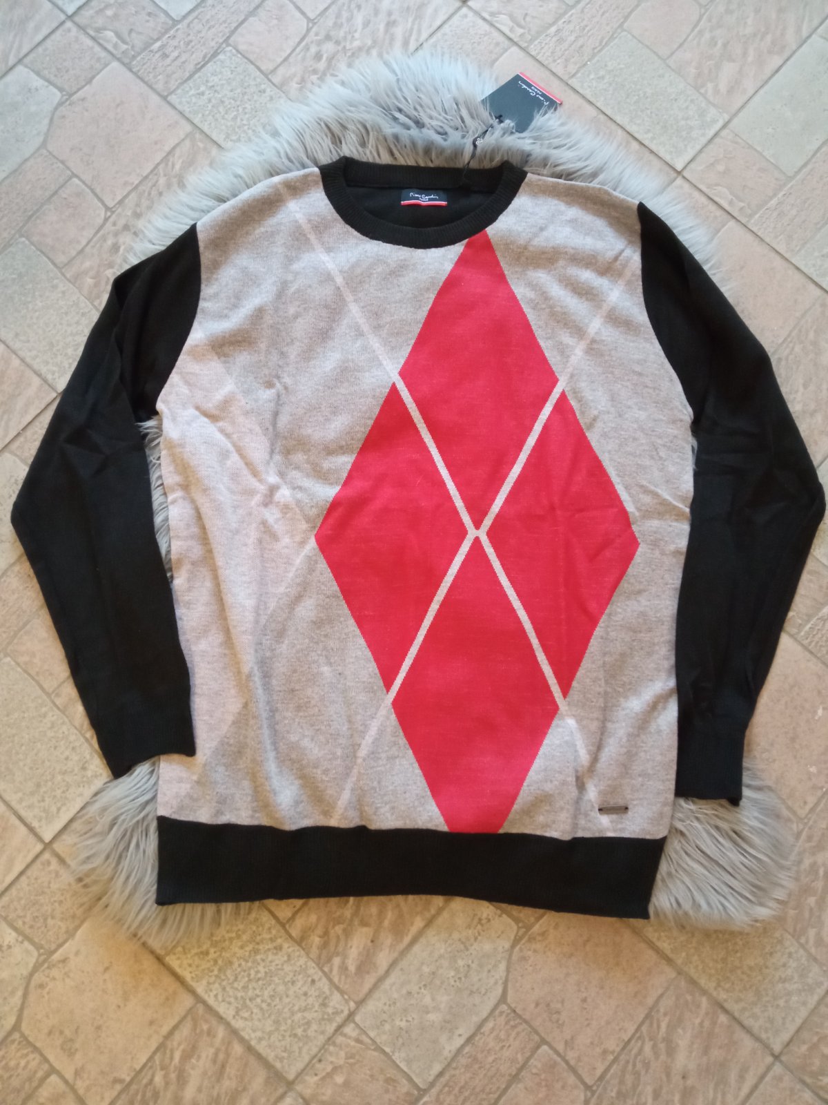 Pánsky tenký sveter dlhý rukáv Pierre Cardin, jemne elastický, tenký. Materiál:100%polyester. Farba:čierna-sivá-červená.