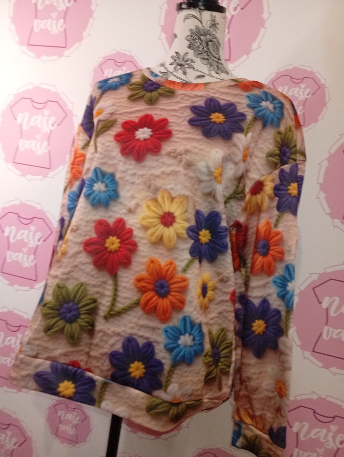 Top stav, kvety sú ako tlač na mikina