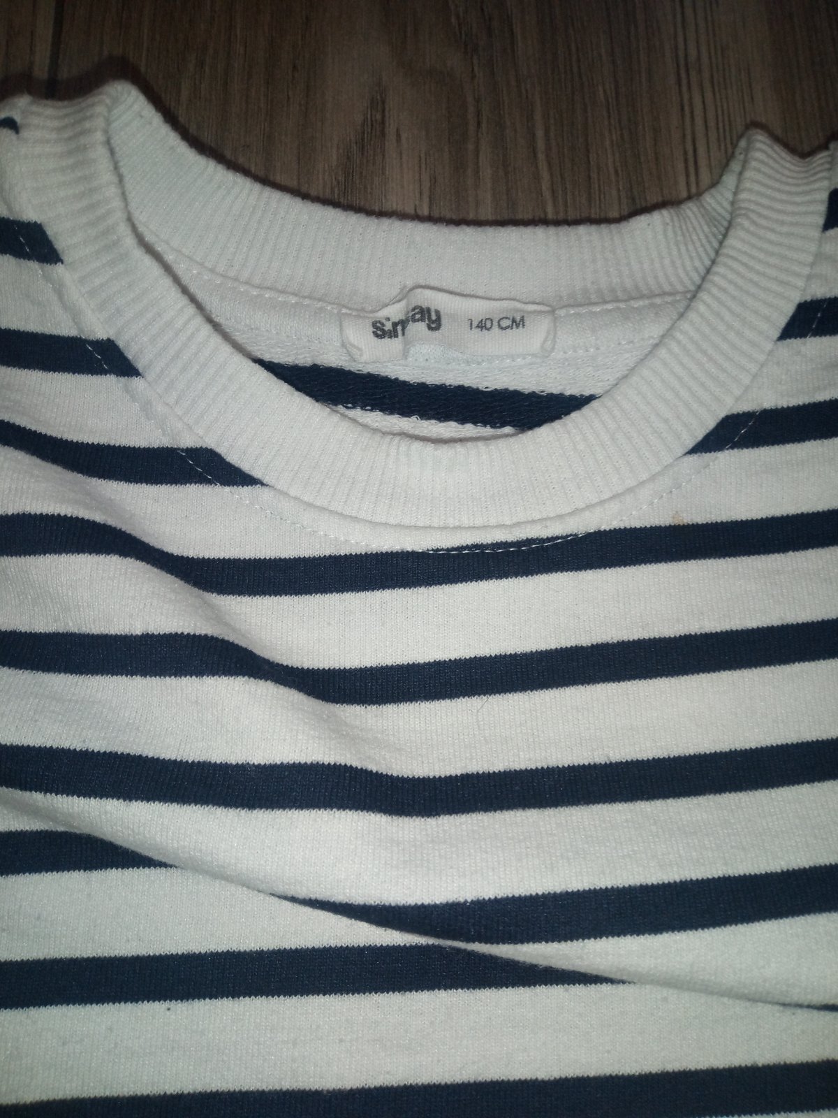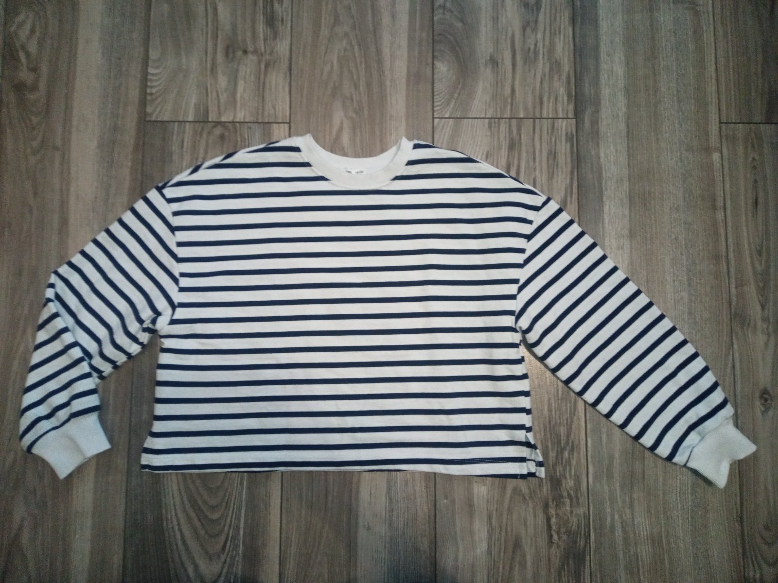 Bielo modrá pásikavé mikina, bez chýb, krátka, široký strih.
