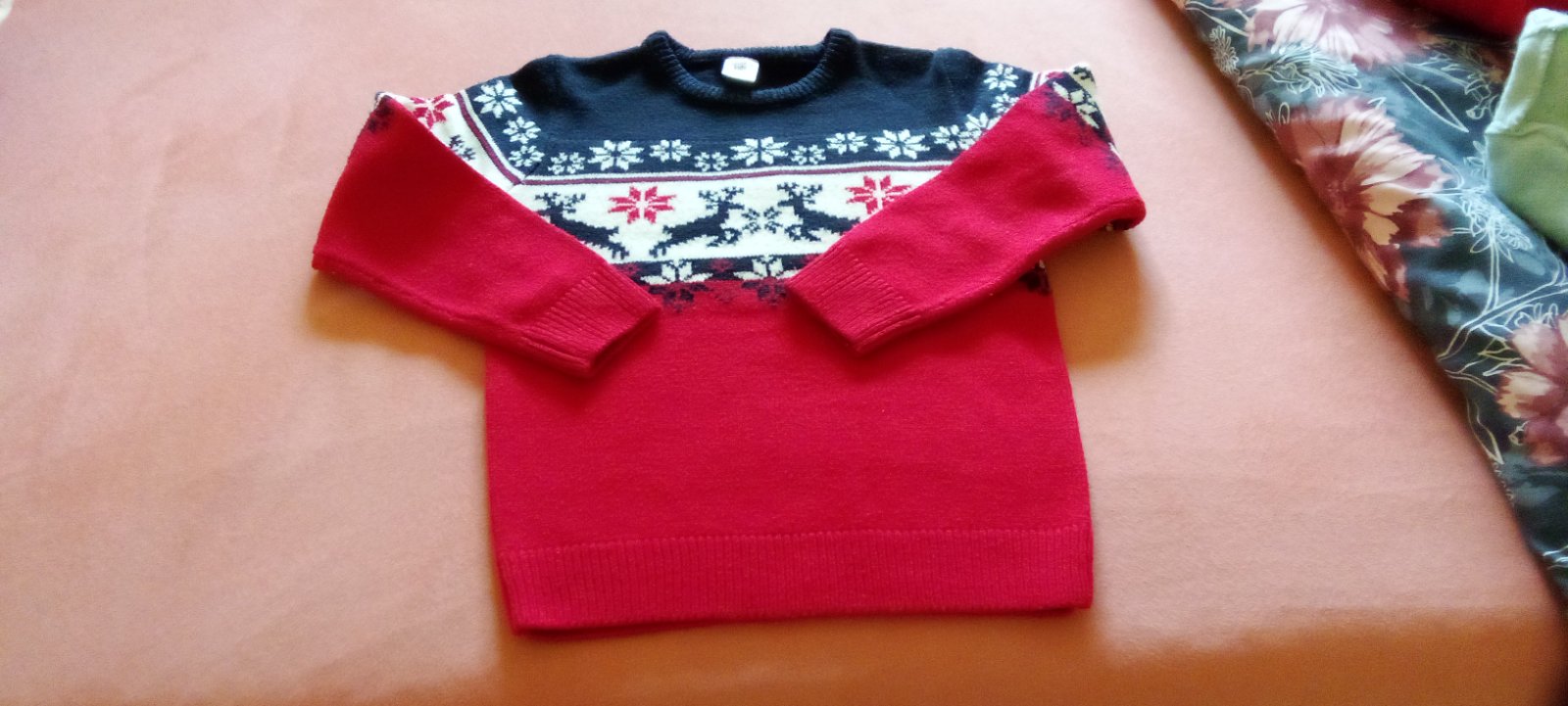 Krasny svetrik sytocervenej farby, nenoseny, len odstrihnute visacky.