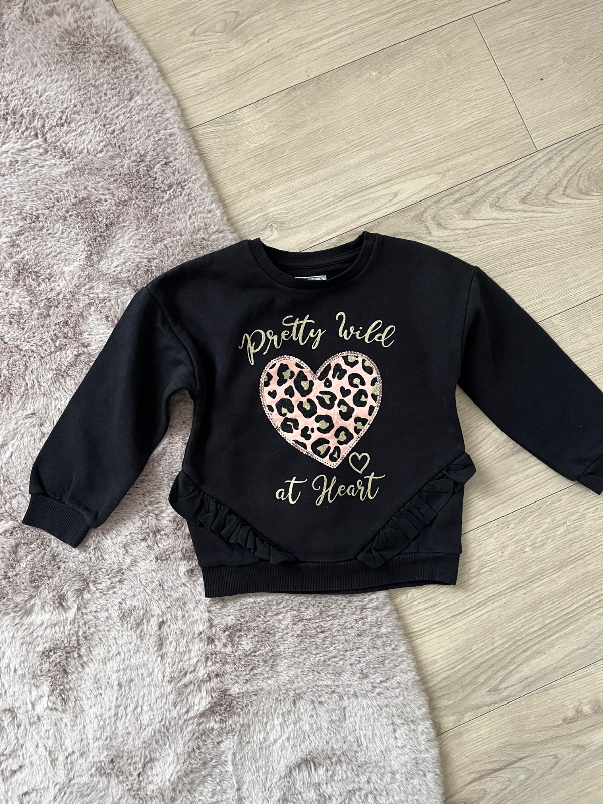 nadherna cierna mikinka, velkost 110 je ako nova, bez poskodenia. krasna a stylova, dcerke som uz nechala vacsiu velkost, tuto mala asi 2x oblecenu #cierna #mikina #srdce #leo #ruzove #heart #palo...