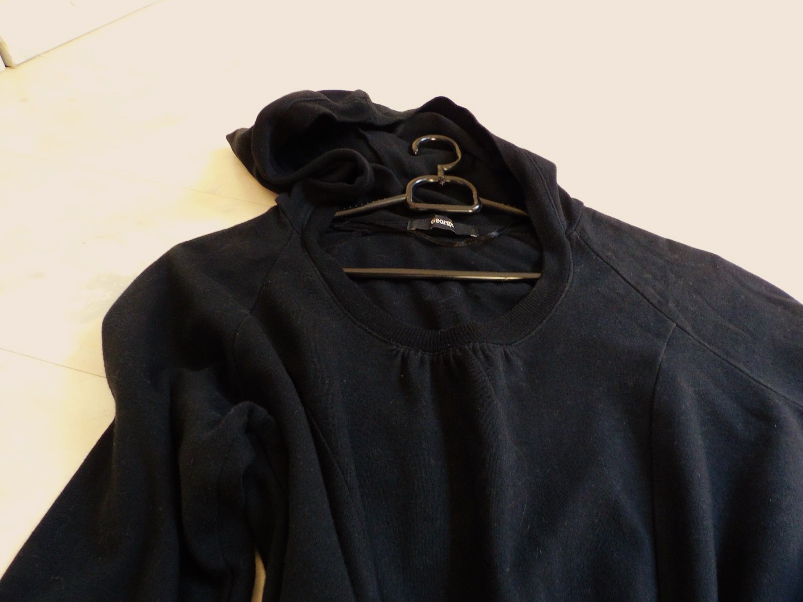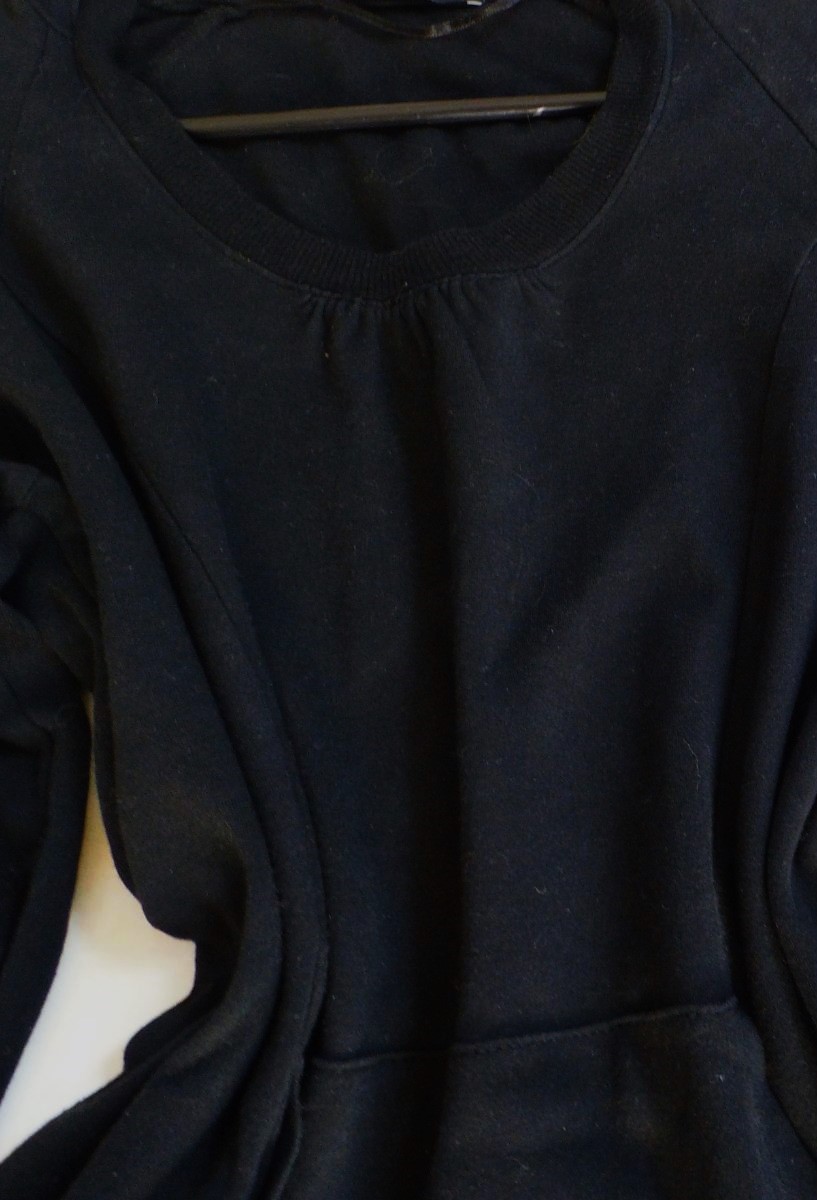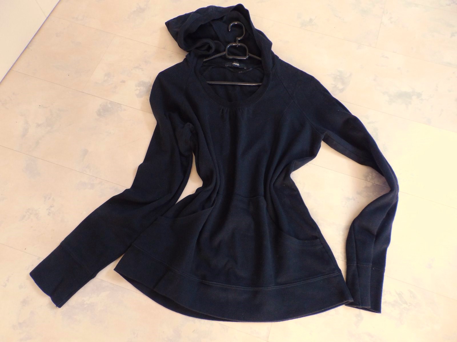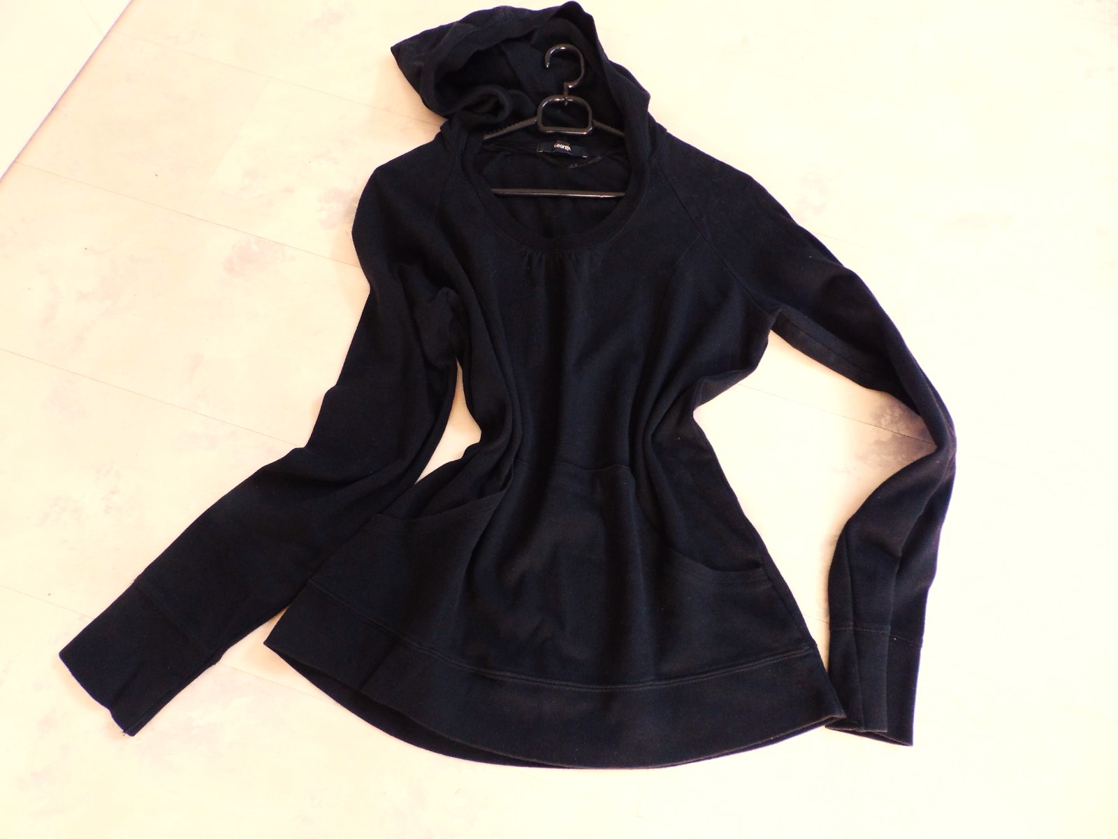 neznosená mikina so zaujímavým netuctovým riešením,pekne princessovo tvarovaná,po bokoch prestrihnutá, s klokankou a kapucňou,sýtočierna farba,super to vyzerá ak sa pod ňu oblečie transparentné tričko/tielko..