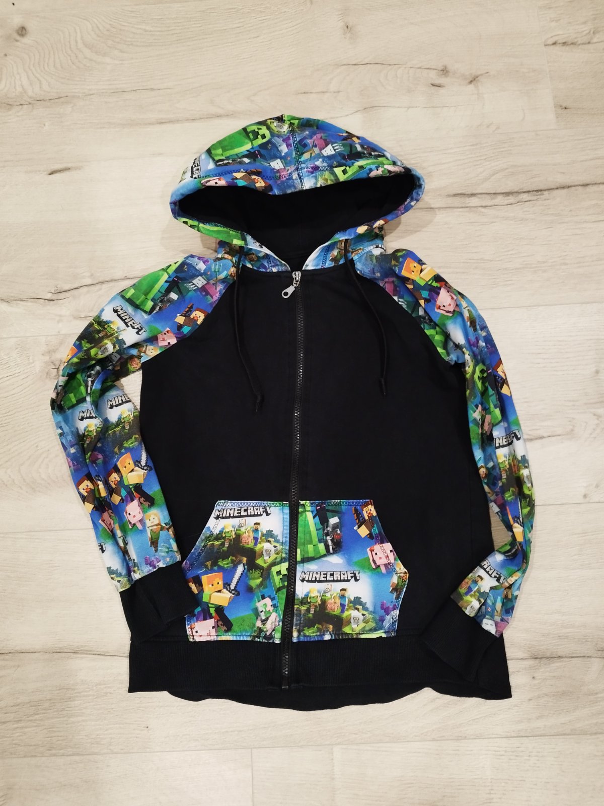 Mnou šitá mikina so stojacikom, nosená synom, bez poškodení.