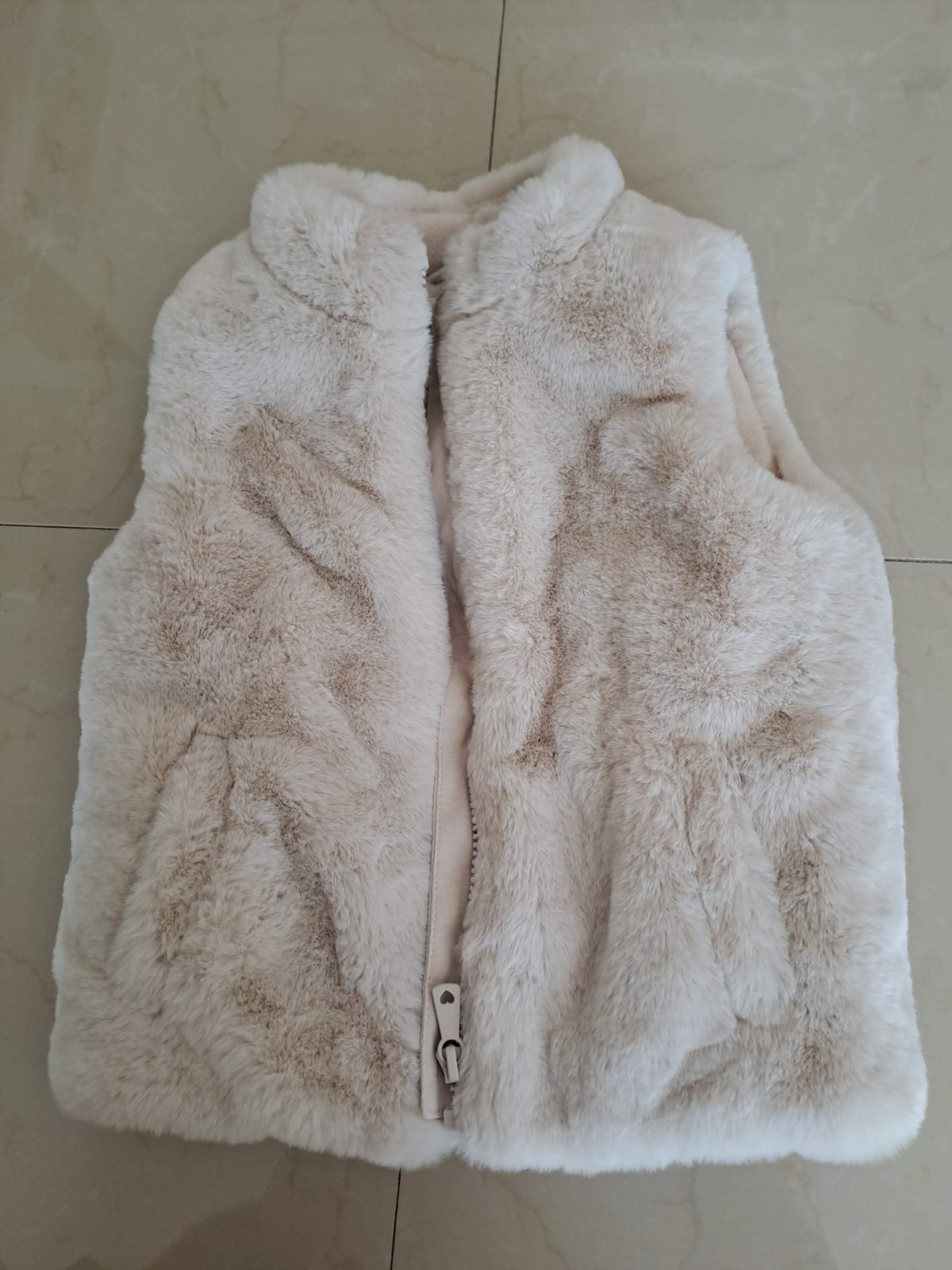 Krásna huňatá vestička zn. F&F. Farba je krémová. Podšitá bavlnou. Ideálna na chladnejsiu jar. Veľmi pekný stav, akurát pri zipse sa trošku šúpe vrchný materiál. Nie je vidieť (prípadne to dať dole...