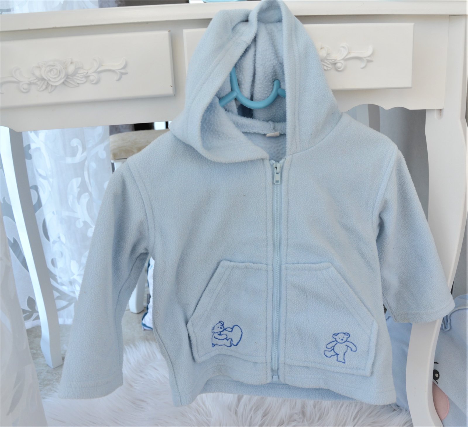 nevymieňam!!nosená,teplá,flísová,zapínanie na zips,písaná veľkosť 80/86,ale je väčšia,premerajte-dĺžka 36cm,šírka 2 x 33cm,rukáv meraný od ramena 25cm..bez poškodení..kuk aj na iné moje inzeráty