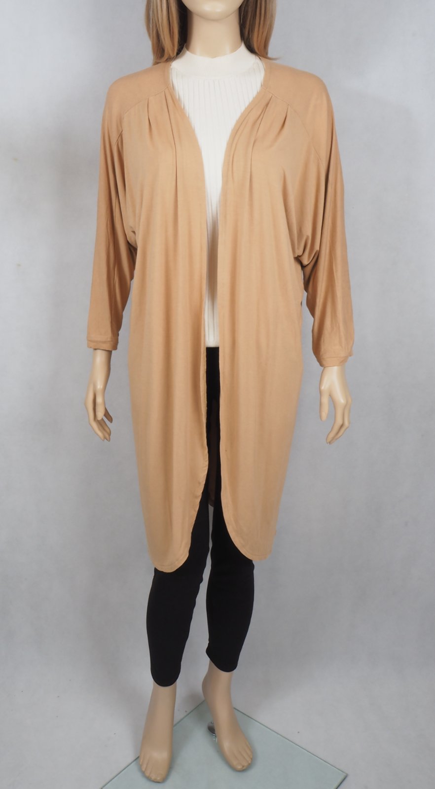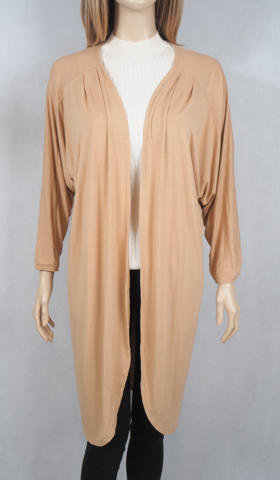 Kvalitný béžový tenký kardigan, bez zapínania, materiál 90% viskóza, 10% elastan, super stav.
