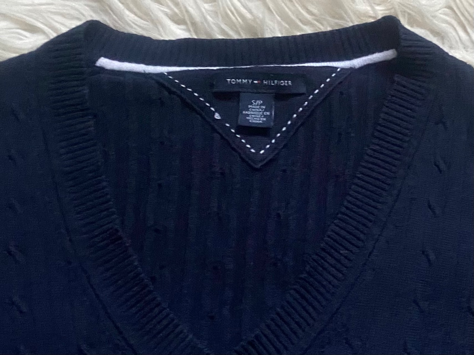 Klasicky pulovrik s V vystrihom Tommy Hilfiger, velkost S, noseny v dobrom stave. Trochu vidiet praci chlp ale nic hrozne.