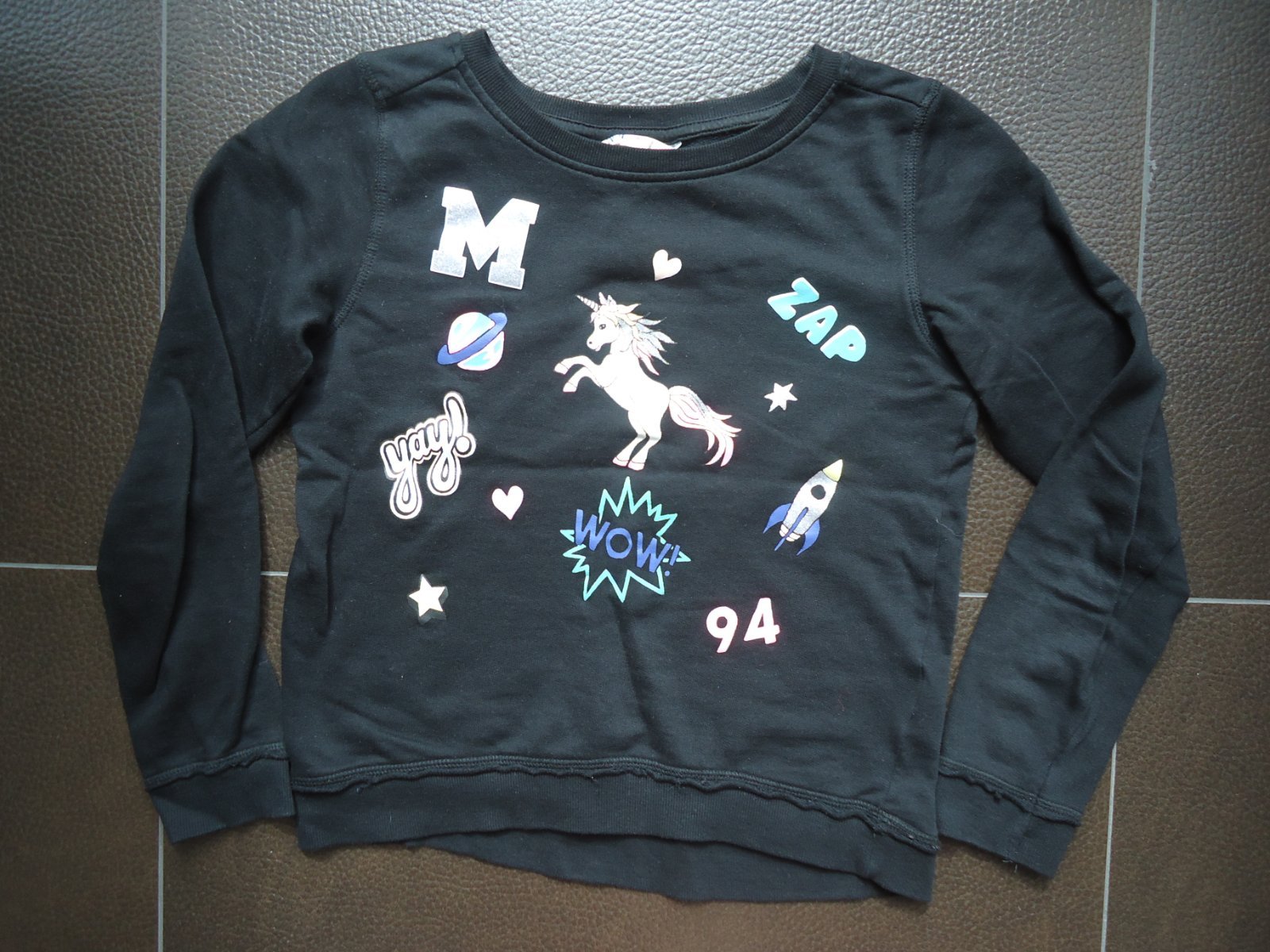 Cierna teplakova mikinka s pestrymi obrazkami, dobry stav ...sirka 43, dlzka 48, plece 6, rukav 53cm