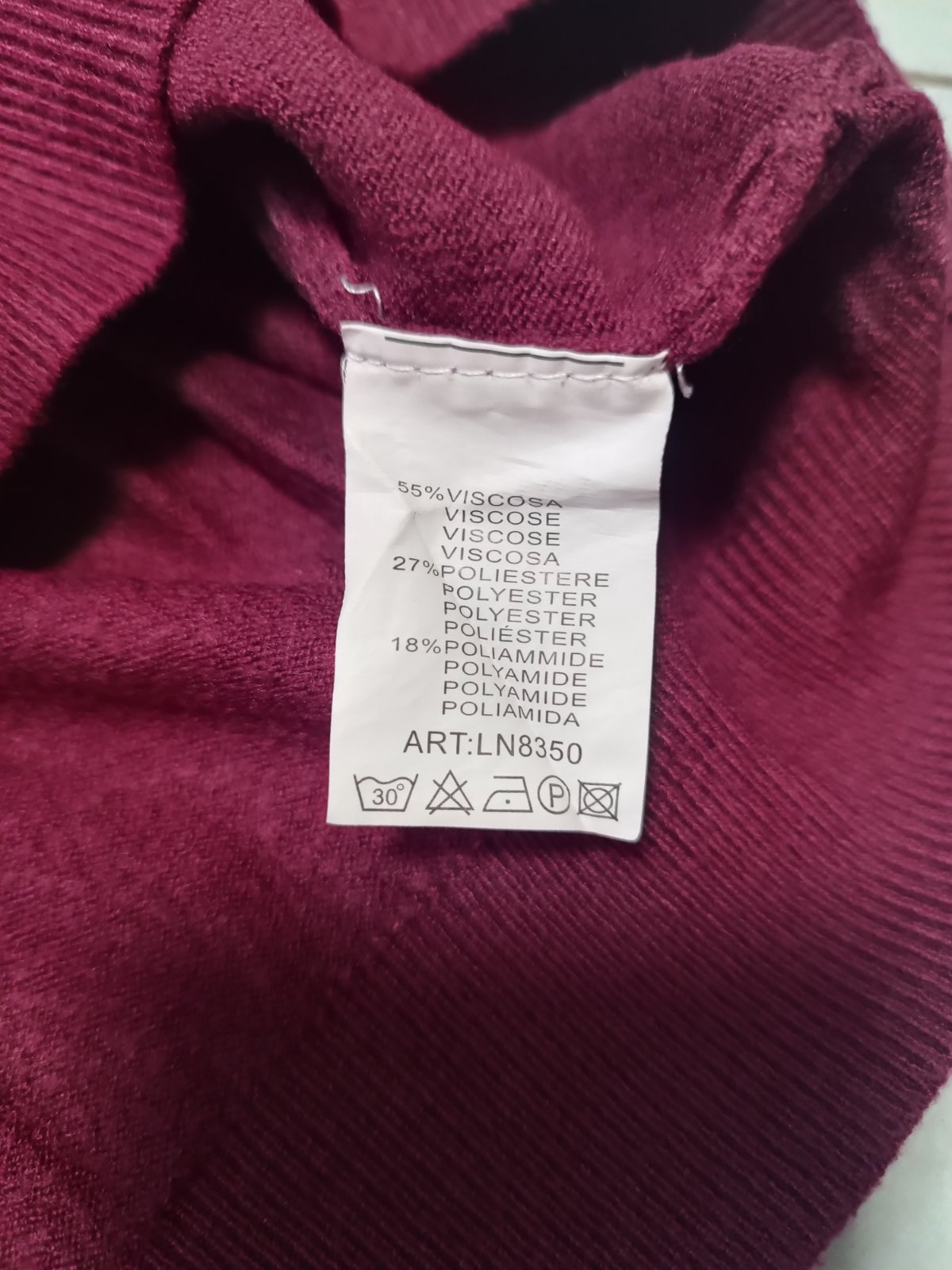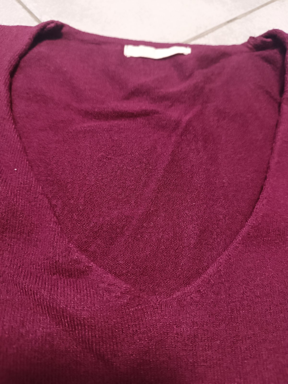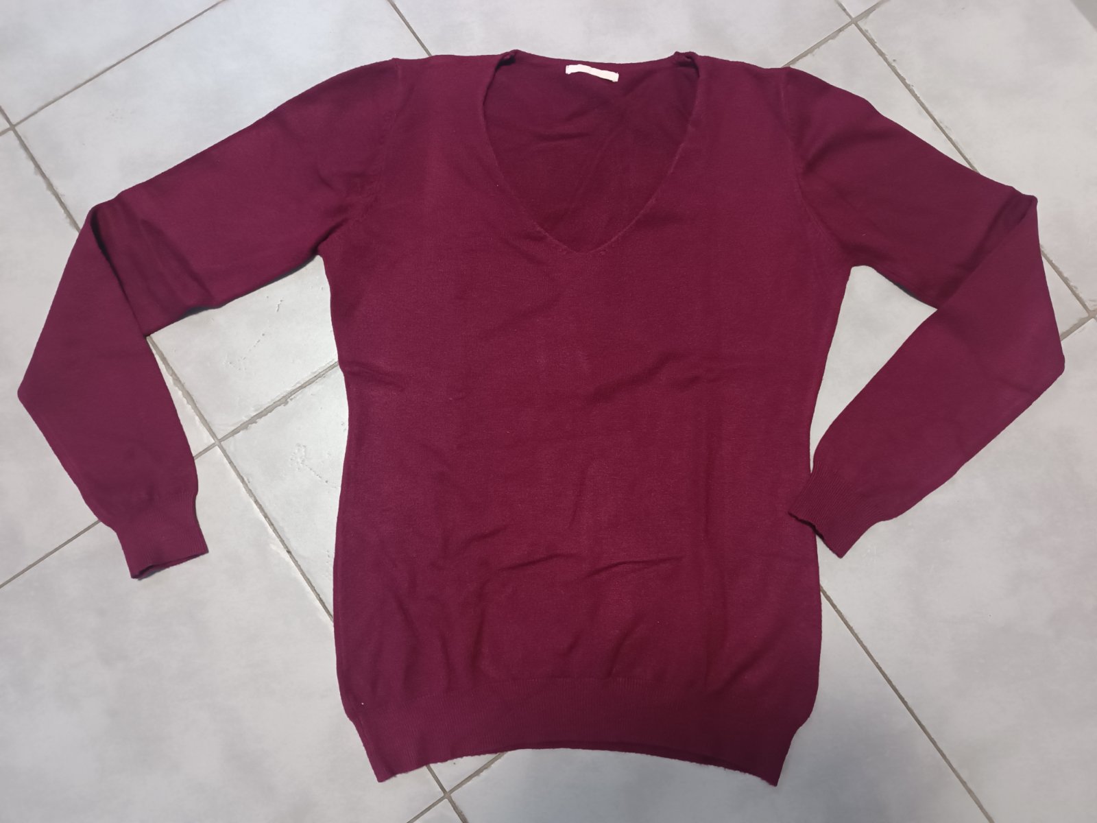 Bordový svetrík, skoro nenosené, výborný stav, veľ. S/M: celková dĺžka 58.5cm, rukáv 59cm, šírka pod pazuchami 45cm. Elastické, natiahne sa, V výstrih.